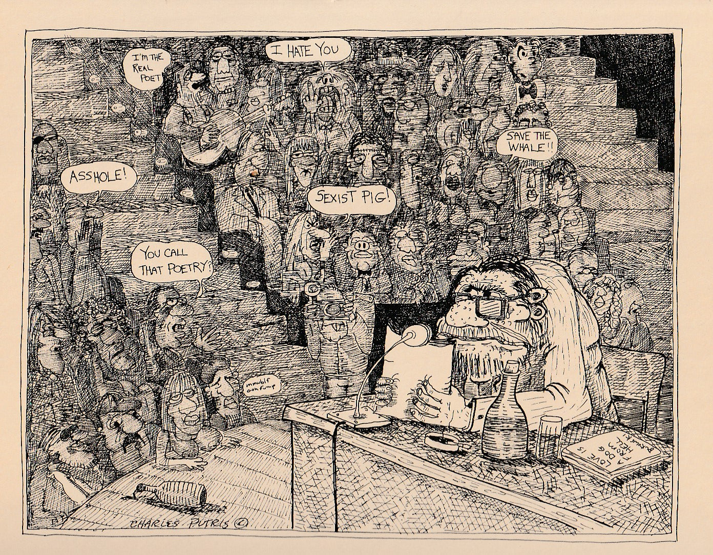 Charles Putris illustrated the calendar and his grainy depictions of Bukowski’s gritty life is spot on. I’m a little surprised John Martin had the sense of humor to print it after trying to protect Bukowski’s “image” for so long.