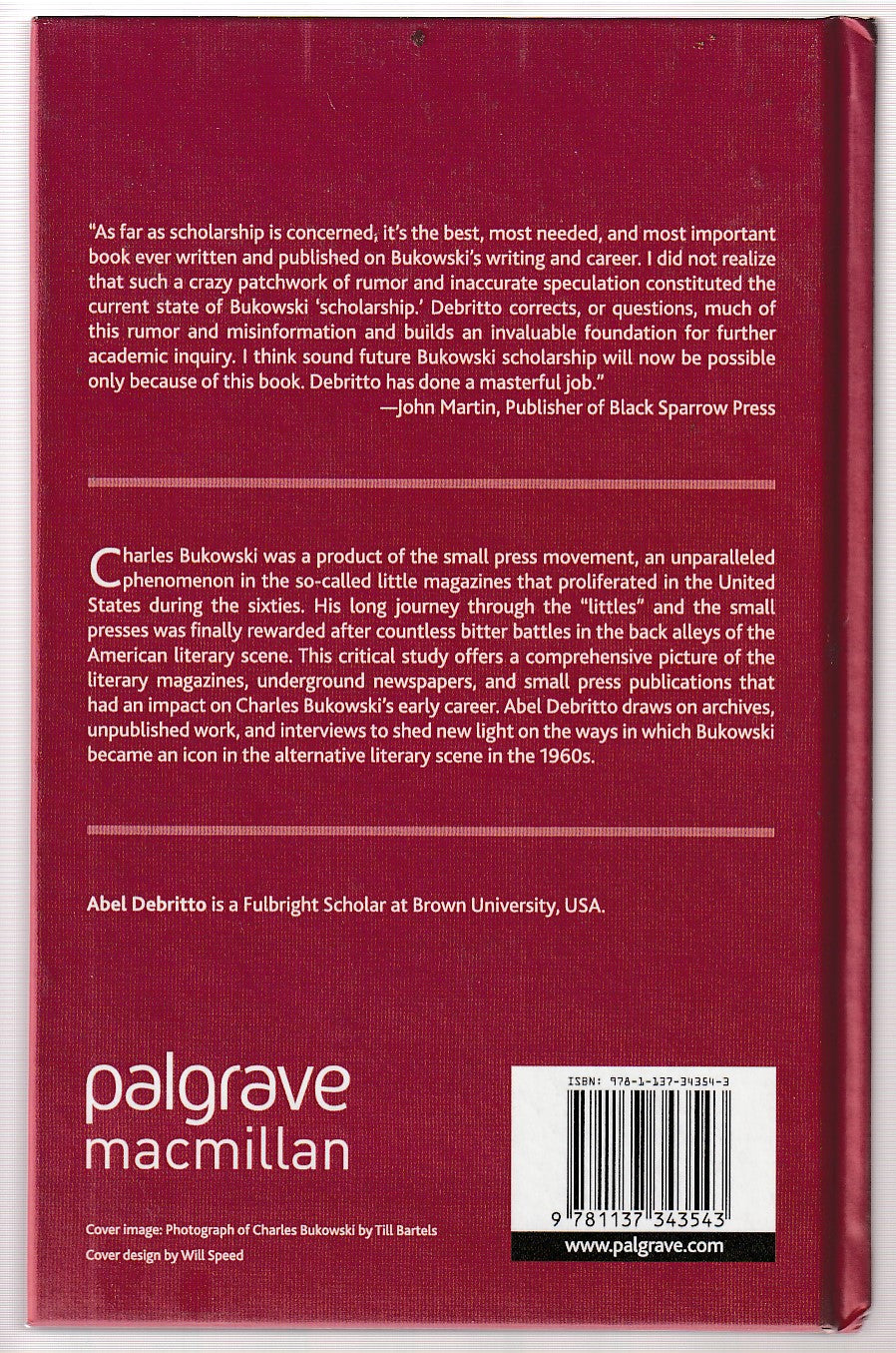 Published in 2013 by Palgrave Macmillan, this ground-breaking book is a must-read for Bukowski collectors and fans.