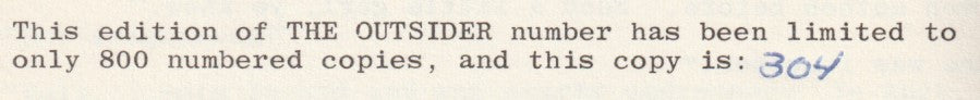 Marvin Malone produced a higher-than-normal run of this Wormwood Review issue at 800 copies. This is hand-numbered copy #304 and is in Near Fine condition, with a small amount of toning to the edge of the spine on the front cover.