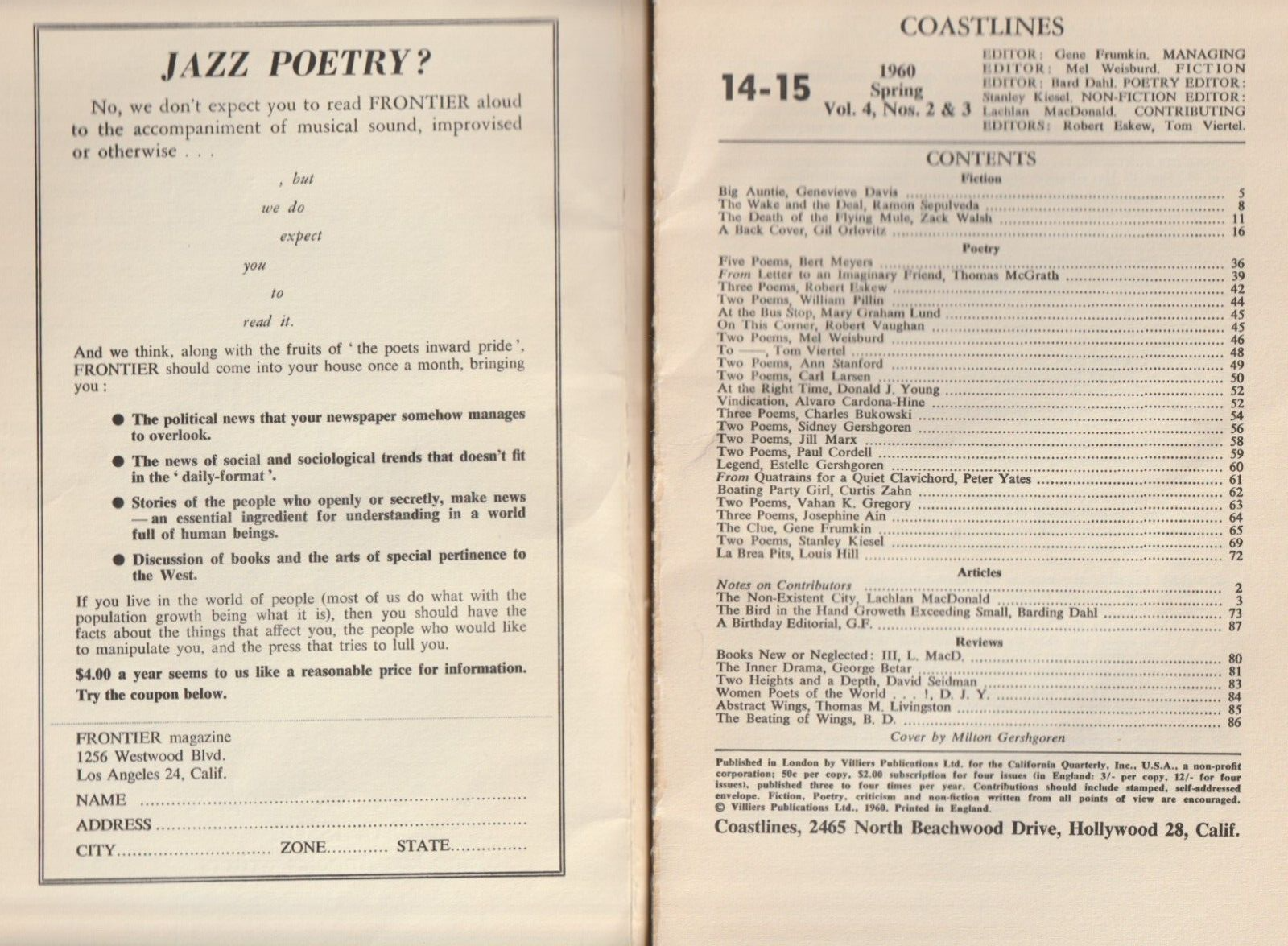 Coastlines 14/15 -- Three Early First Appearances by Charles Bukowski (1960)