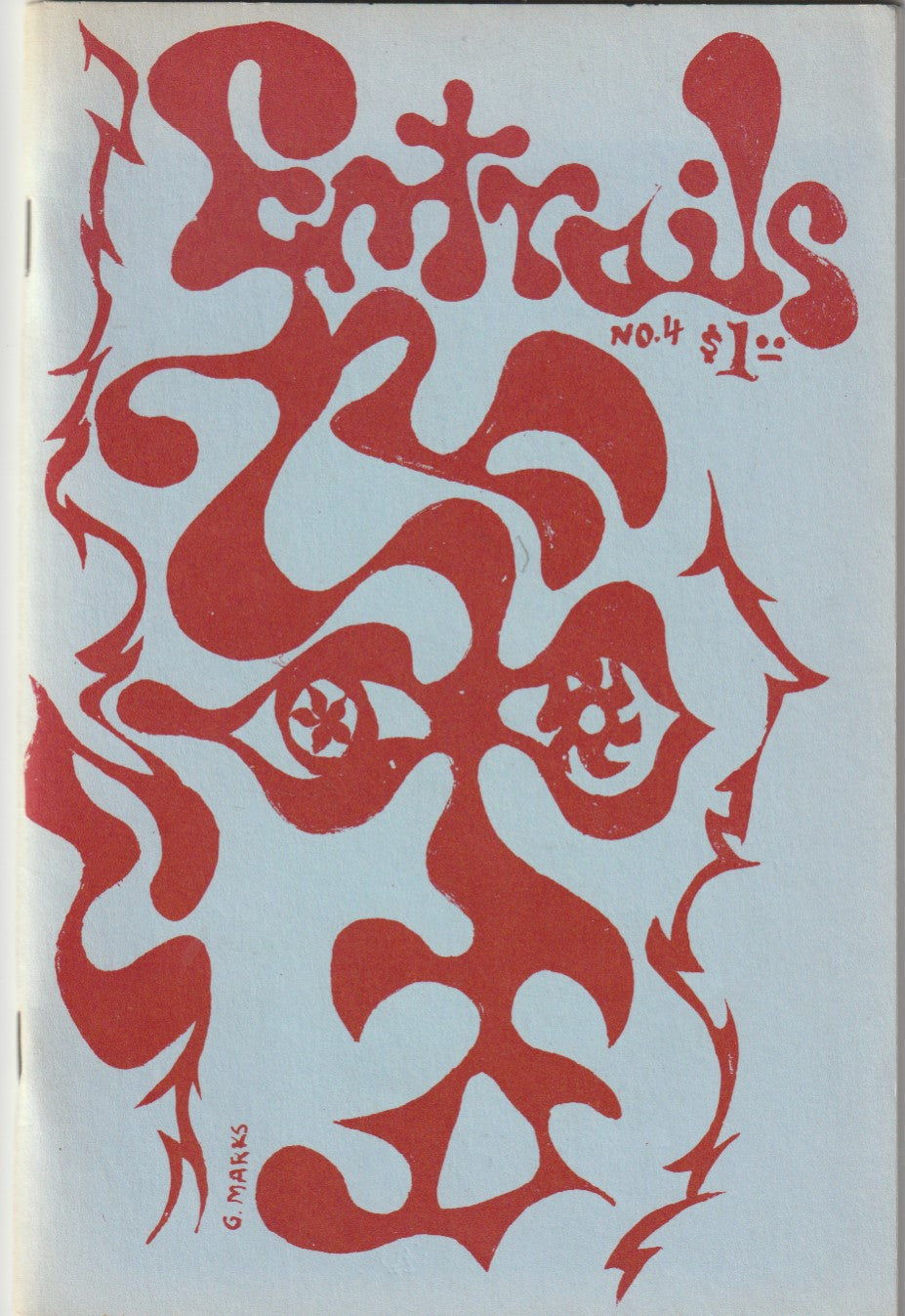 This was the fourth and final issue of Entrails. It was compiled and edited by Gene Bloom prior to him serving three years in prison for possessing 32 pounds of pot he intended to sell to produce Entrails 5.