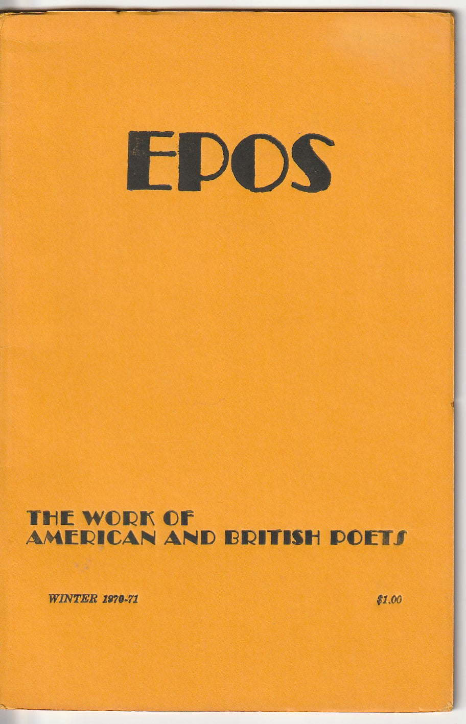 An early supporter of his work, Bukowski would appear in 12 issues of EPOS between 1959 and 1970. One 'extra' issue of Epos was entirely devoted Bukowski, entitled "Poems and Drawings". Released in 1962, it is considered Bukowski's sixth poetry collection.