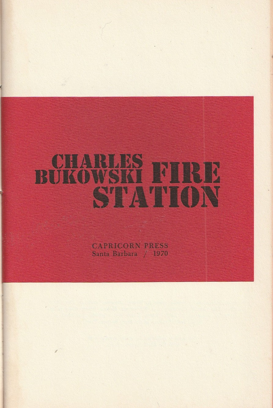 Fire Station holds a unique place in the bibliography of Charles Bukowski. Produced in both hardcover and softcover editions “by special arrangement with the Black Sparrow Press”, it can be considered the last of the early Bukowski chapbooks.