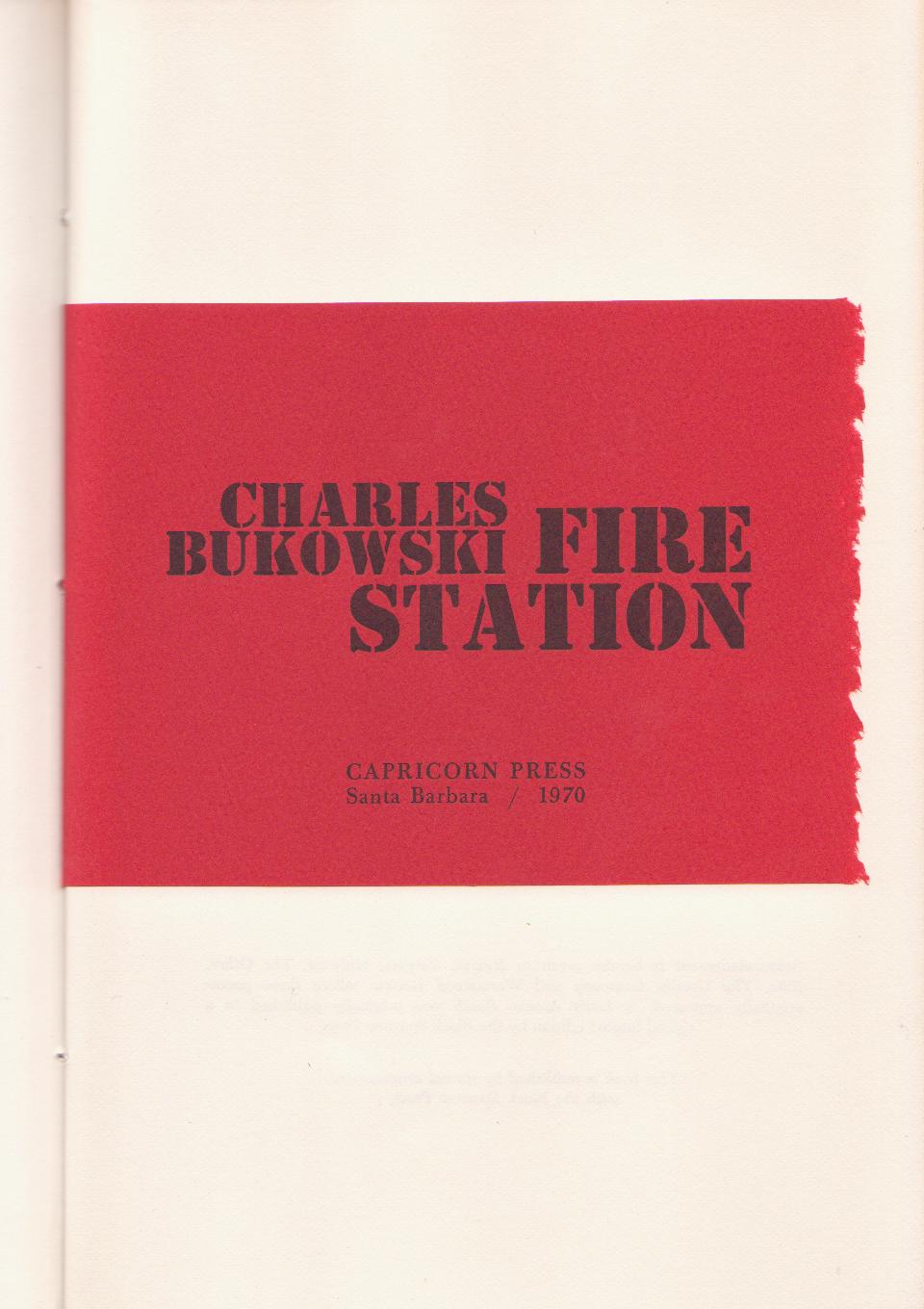 Fire Station was published by Capra Press 1970. It would be the last time a Bukowski book was published by someone besides Black Sparrow Press for many years.