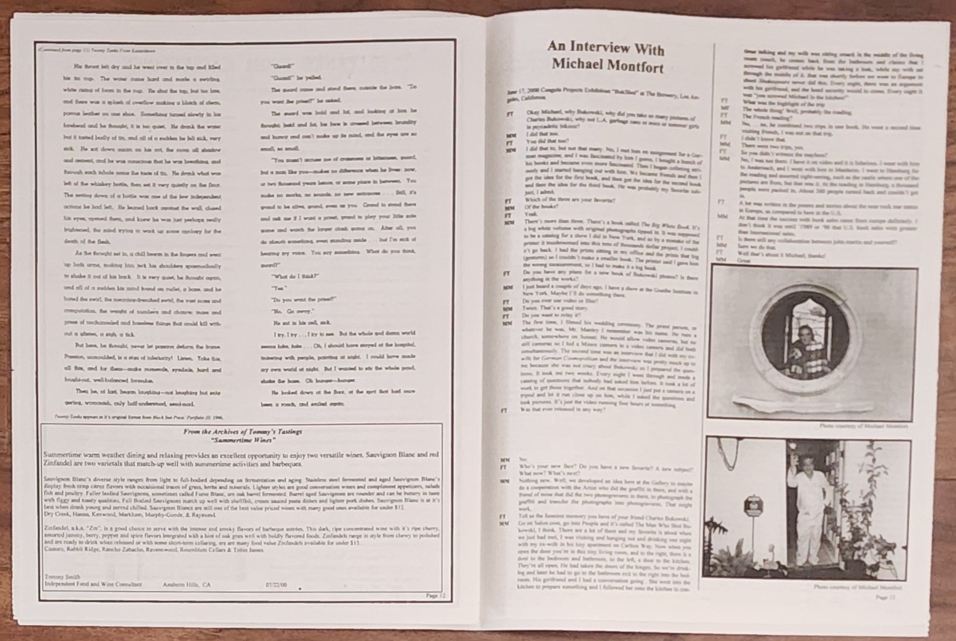 It contains a photo sheet signed by Michael Montfort with three Charles Bukowski photographs and an additional larger photograph that is unsigned. The photographs were used in the issue.