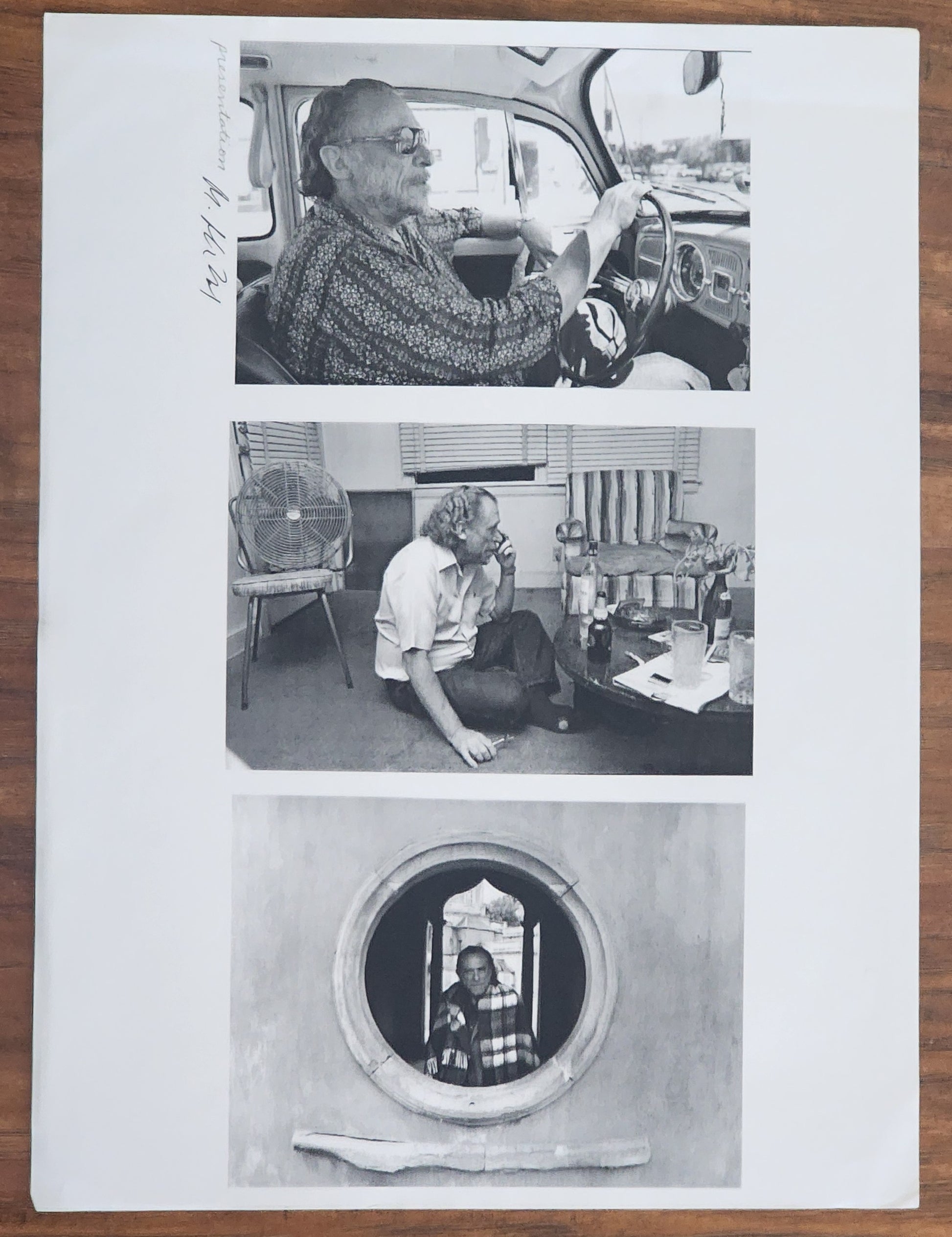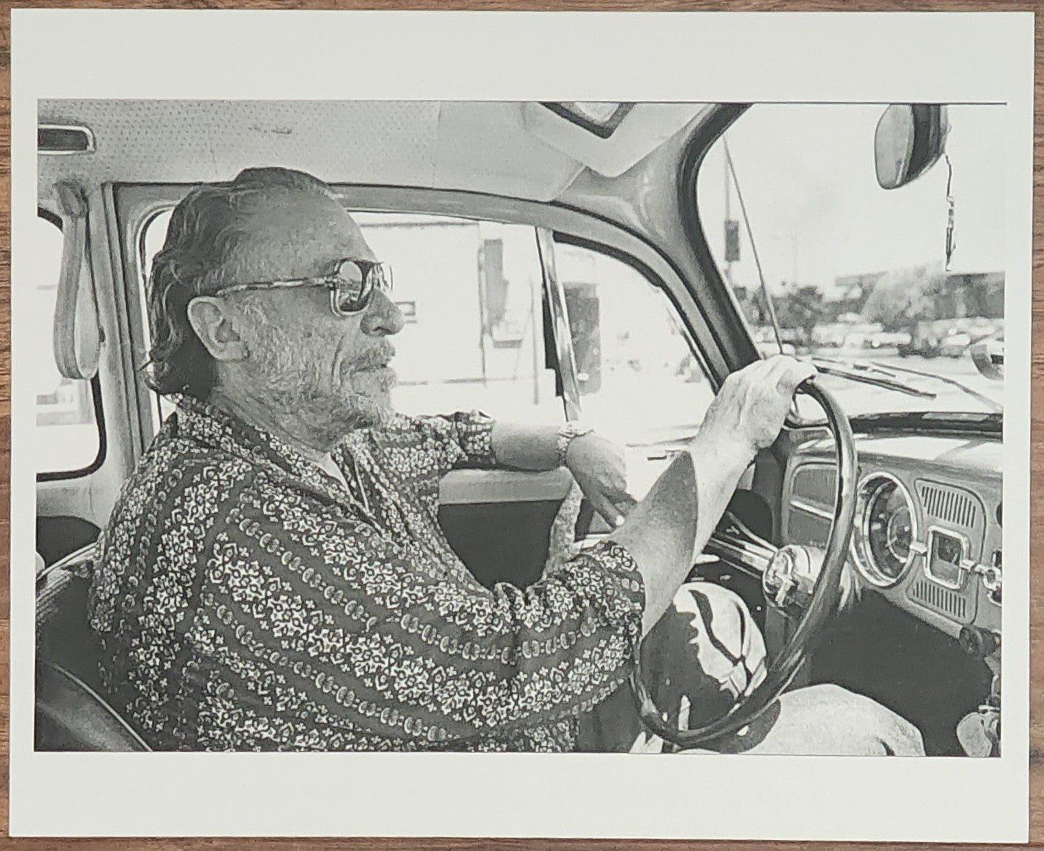 The larger photo of Bukowski in his Volkswagen measure 11.75” x 9.5” and is printed on the same paper but is in near perfect condition.