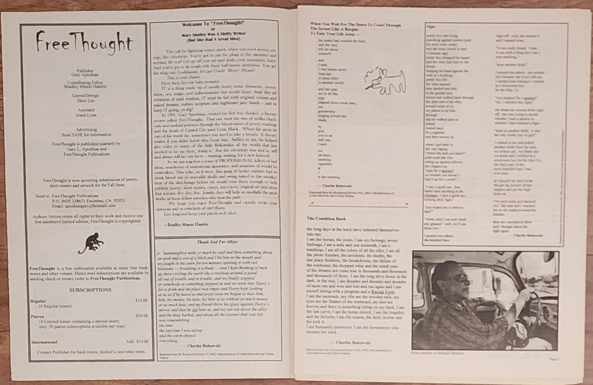 There is also an article by publisher Gary Aposhian a funny piece by Scott Harrison about meeting Bukowski.