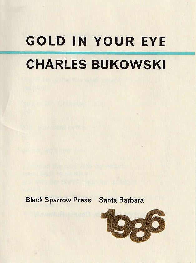 The 1986 Black Sparrow Press New Years Greeting featured the poem Gold In Your Eye.