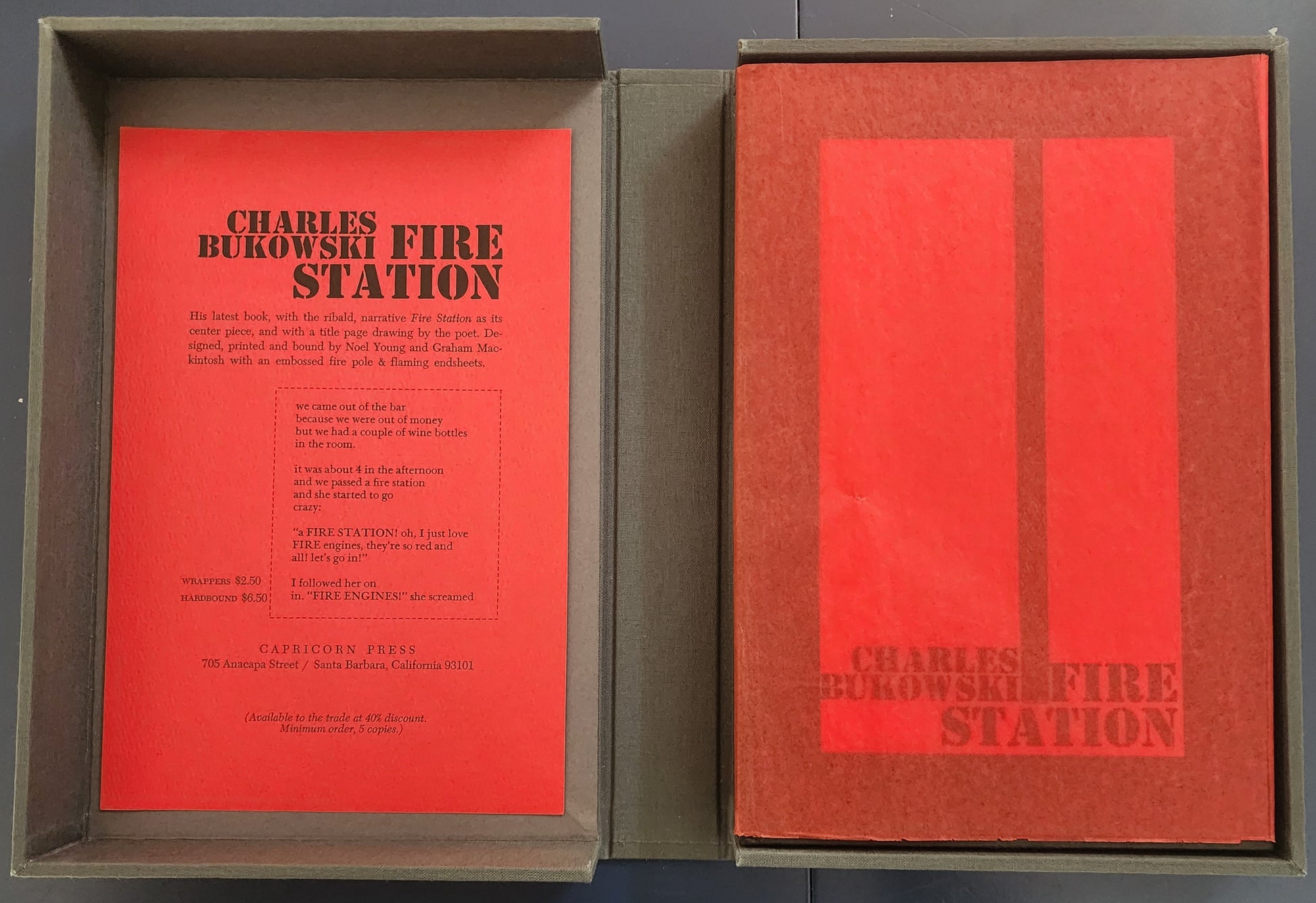 Published in March 1970 by Capra Press, Fire Station holds a unique place in the bibliography of Charles Bukowski. Produced in both hardcover and softcover editions “by special arrangement with the Black Sparrow Press”, it can be considered the last of the early Bukowski chapbooks.