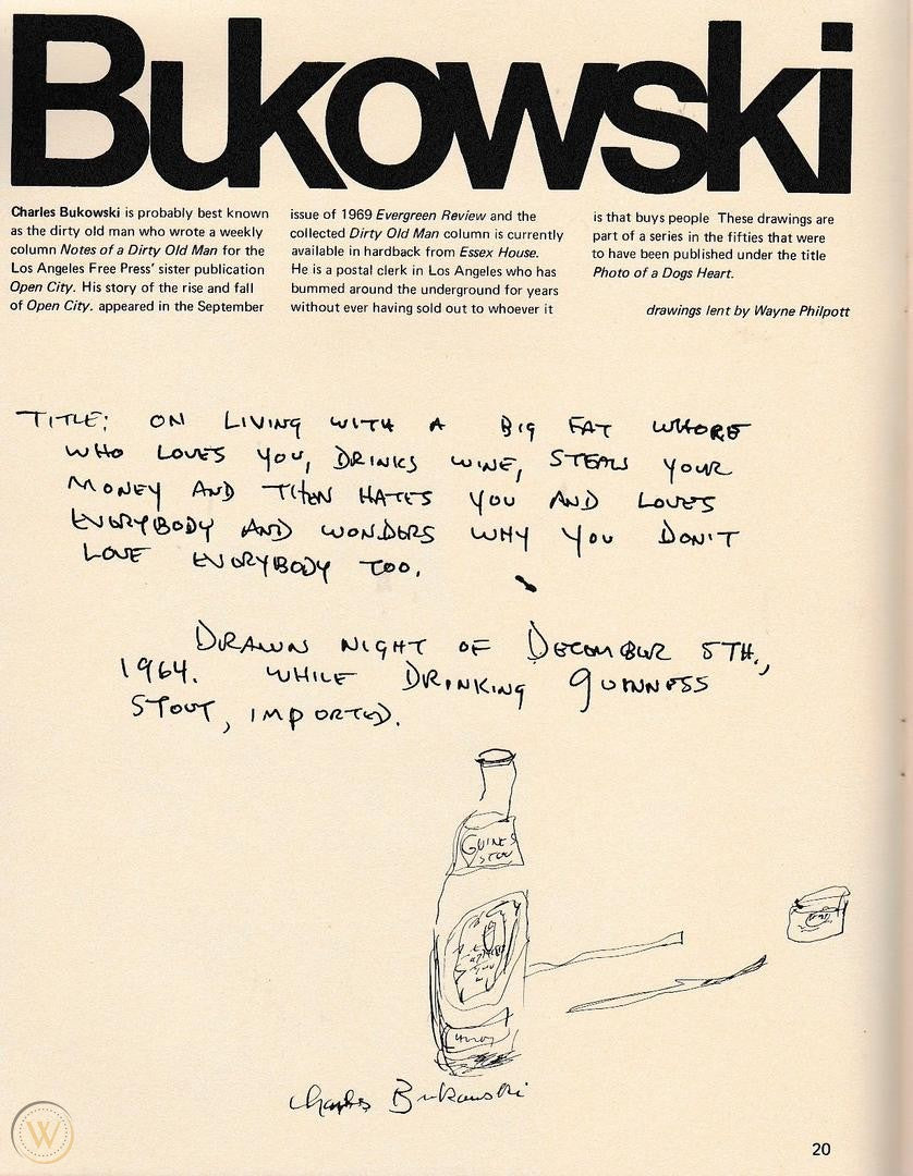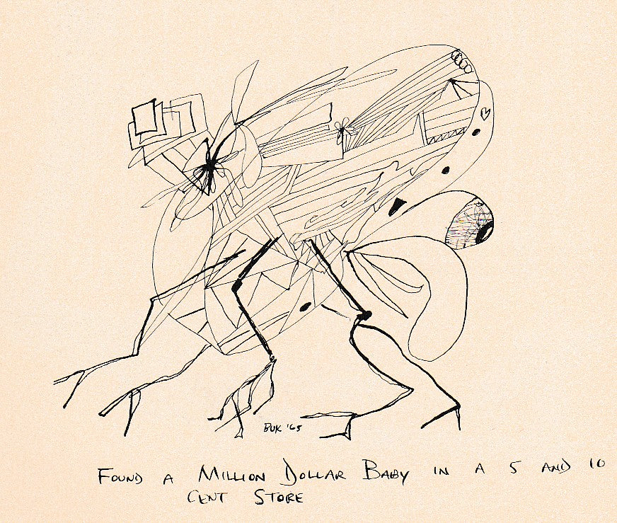 The editors had no idea of the back story and for some reason assumed they were from the 1950s. Regardless, 11 of Bukowski’s drawings from 1965 finally saw the light of day.