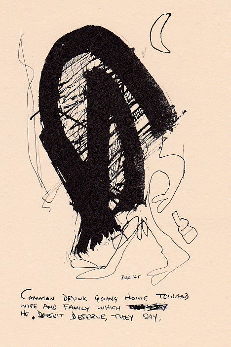 Philpot liked Bukowski’s drawings so much that he proposed a book of Bukowski drawings. Bukowski was excited by the idea and supposedly sent Philpot over 200 drawings, of which the editor chose 15 for publication.