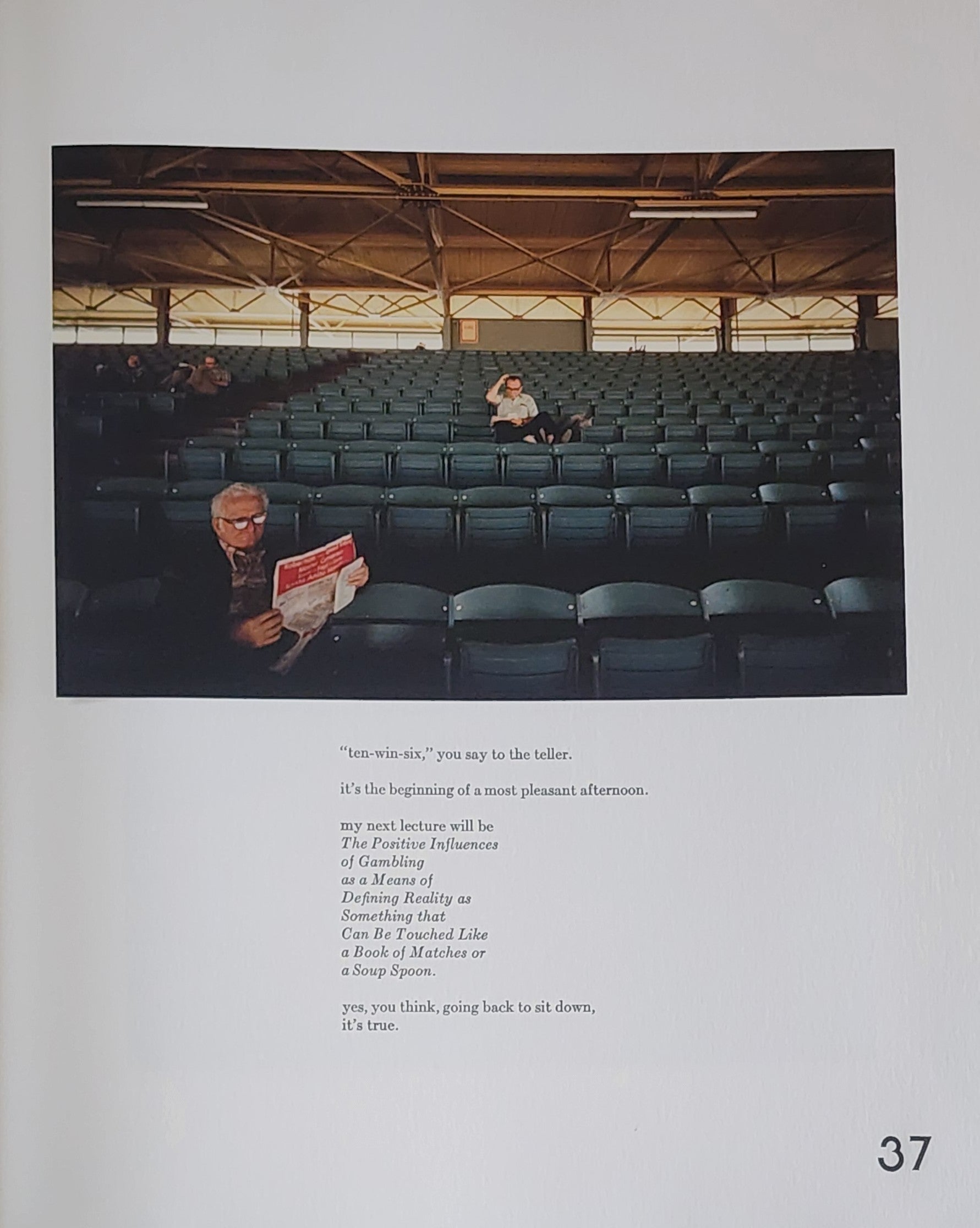 Published in 1982, Horsemeat contains 20 tipped-in photographs capturing a day at the track with Bukowski. Tipped-in meaning, they are real photographs that are adhered to the pages.