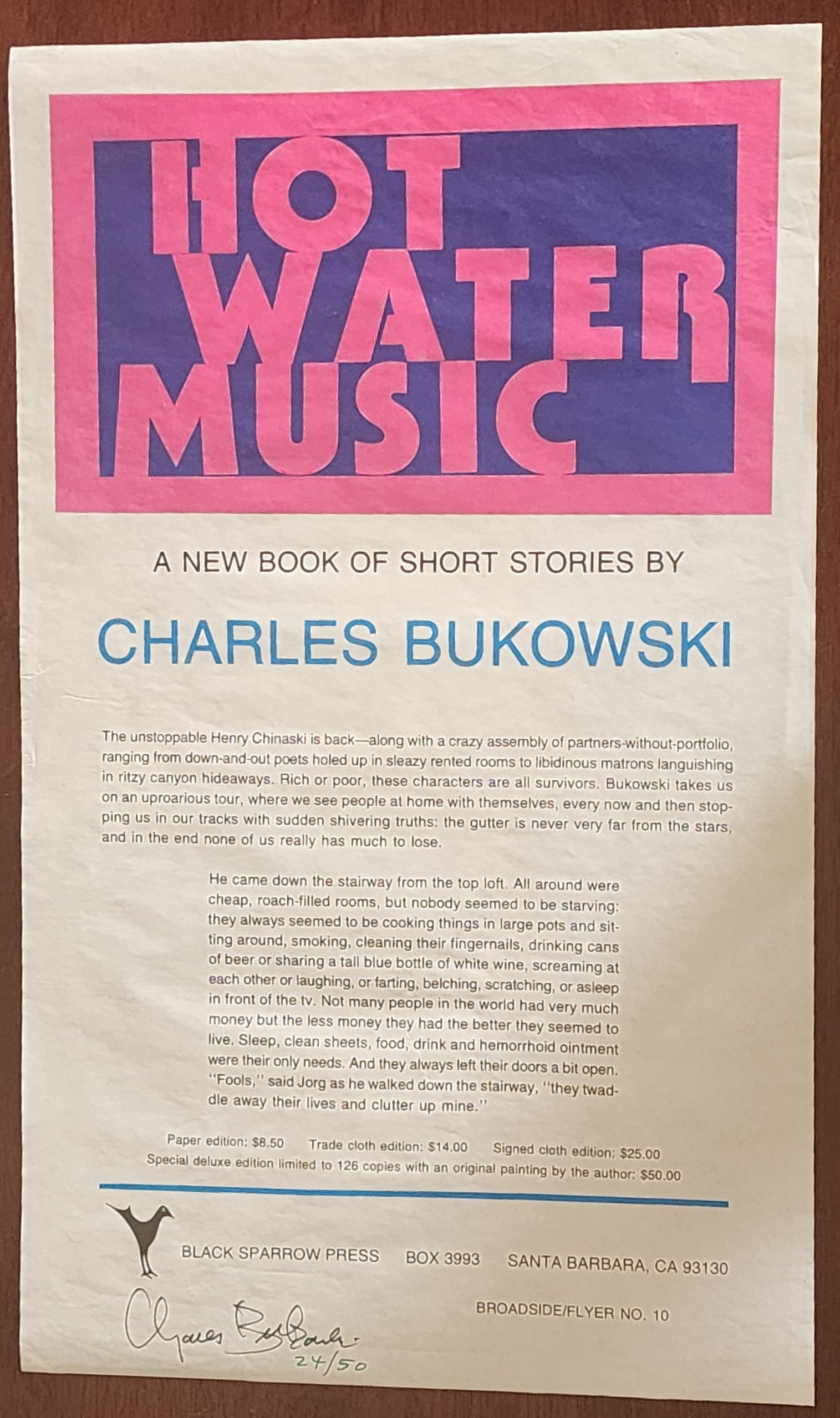 Hot Water Music Broadside: #24/50 Signed by Charles Bukowski