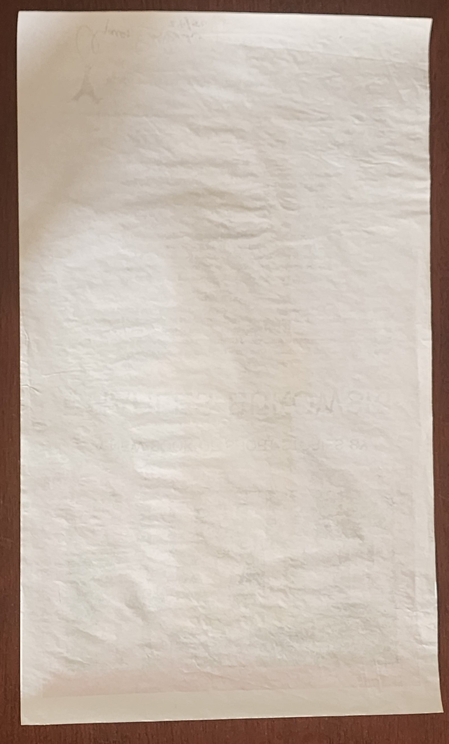 This copy has what I would describe as lots of micro-wrinkles. I’ve seen several copies of the folded, unsigned copies and most look just about perfect. But for an unfolded copy, the paper used was incredibly thin and delicate for the size of the sheet. Unless it went straight into a frame, I doubt there are any out there without some kinds of imperfections.