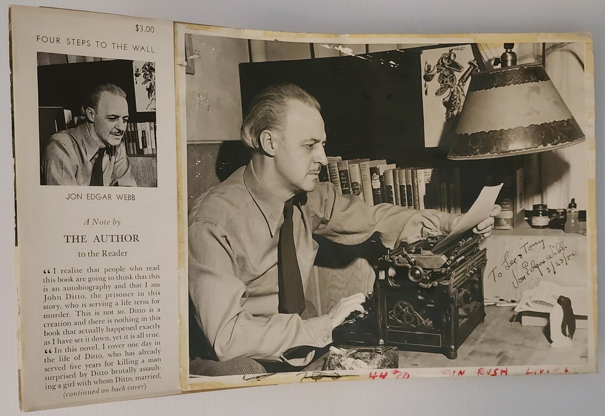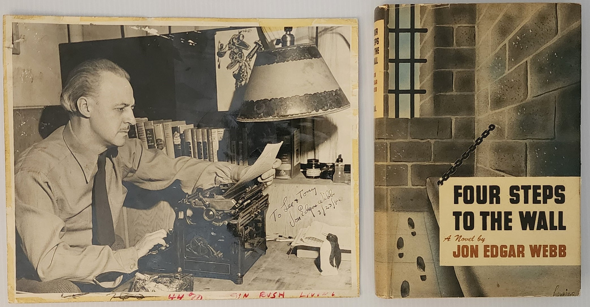 Inscribed Photograph and Hardcover Four Steps to the Wall by Jon Edgar Webb