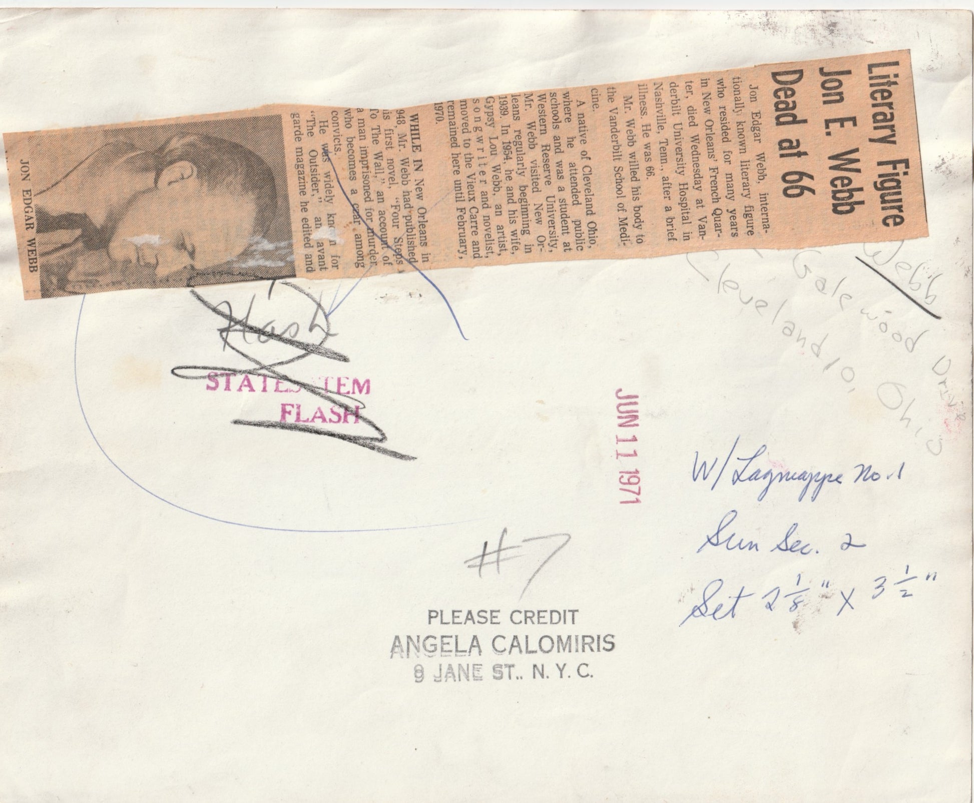 There is also a stamp for STATES ITEM FLASH, a publication that appears to have been part of the famous New Orleans newspaper, The Times-Picayune.