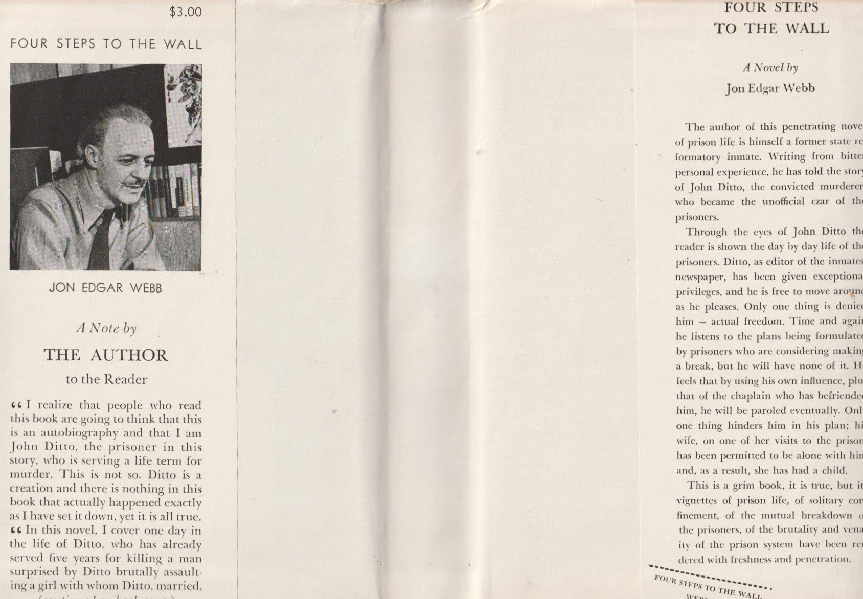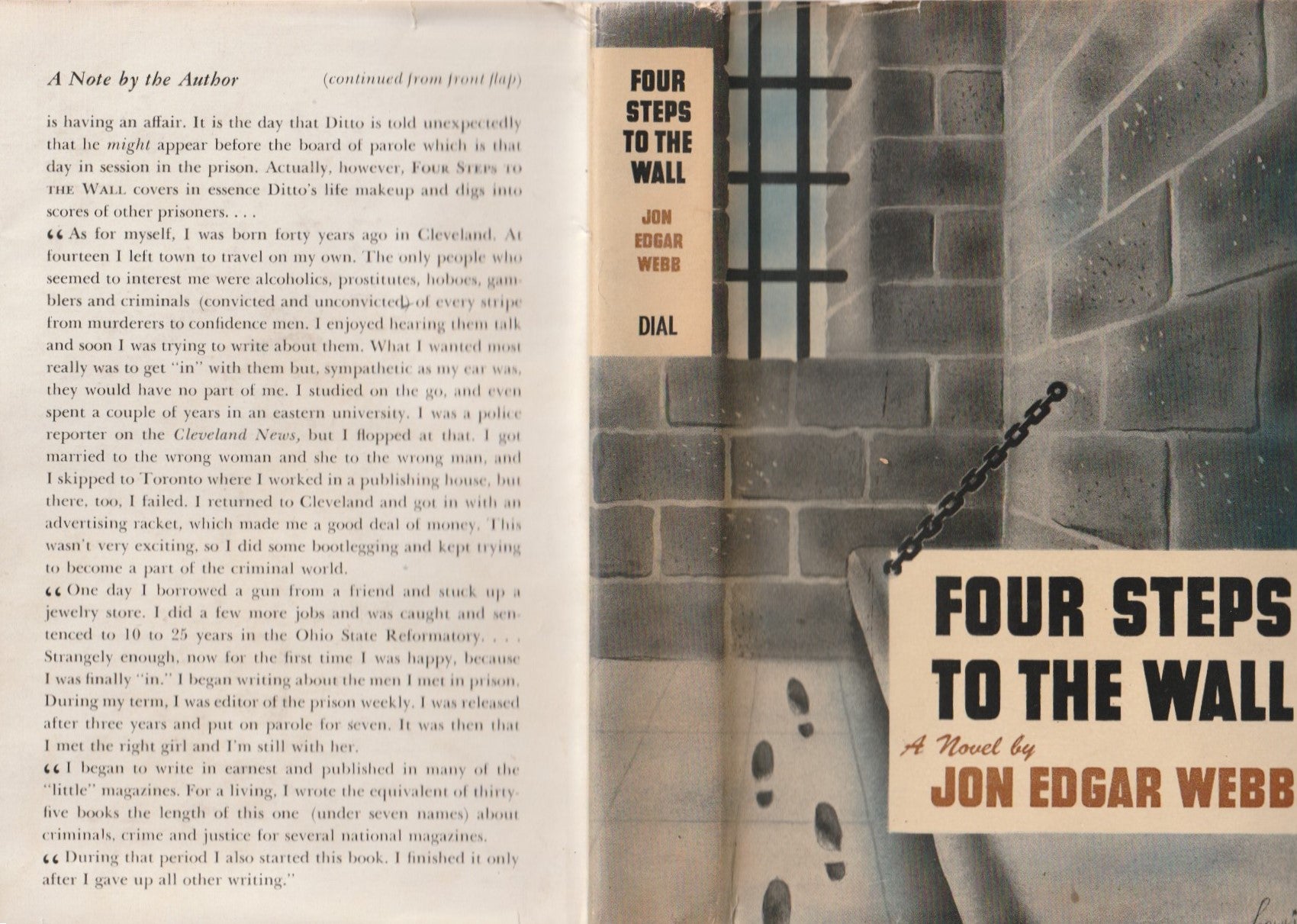 "FOUR STEPS TO THE WALL." Bv Jon Edgar Webb. Published by the Dial Press of New York. The story of John Ditto's life within prison walls Is a strange one built about his routine as editor of the prison paper and general confessor for men of all types.