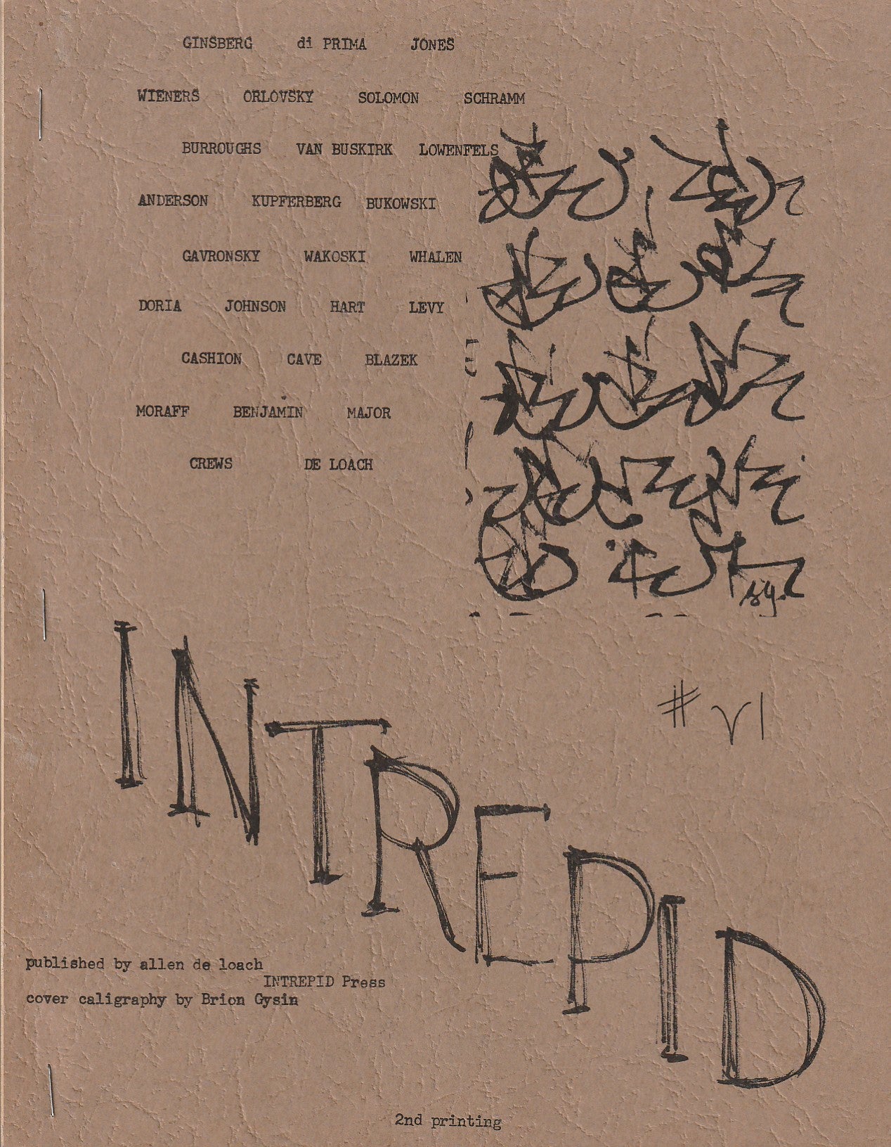 Edited by Allen De Loach in New York (issues 1-5) and then Buffalo (issues 6-41), Intrepid (1964-1980) published a large number of poets directly and indirectly associated with the New American Poetry, and especially Beat writers. Contributors included a long list of such influential figures as Allen Ginsberg, Gregory Corso, LeRoi Jones (Amiri Baraka), Philip Whalen, William Burroughs, Diane di Prima, Charles Bukowski, Ted Berrigan, Gary Snyder, Ted Enslin, and Charles Olson.
