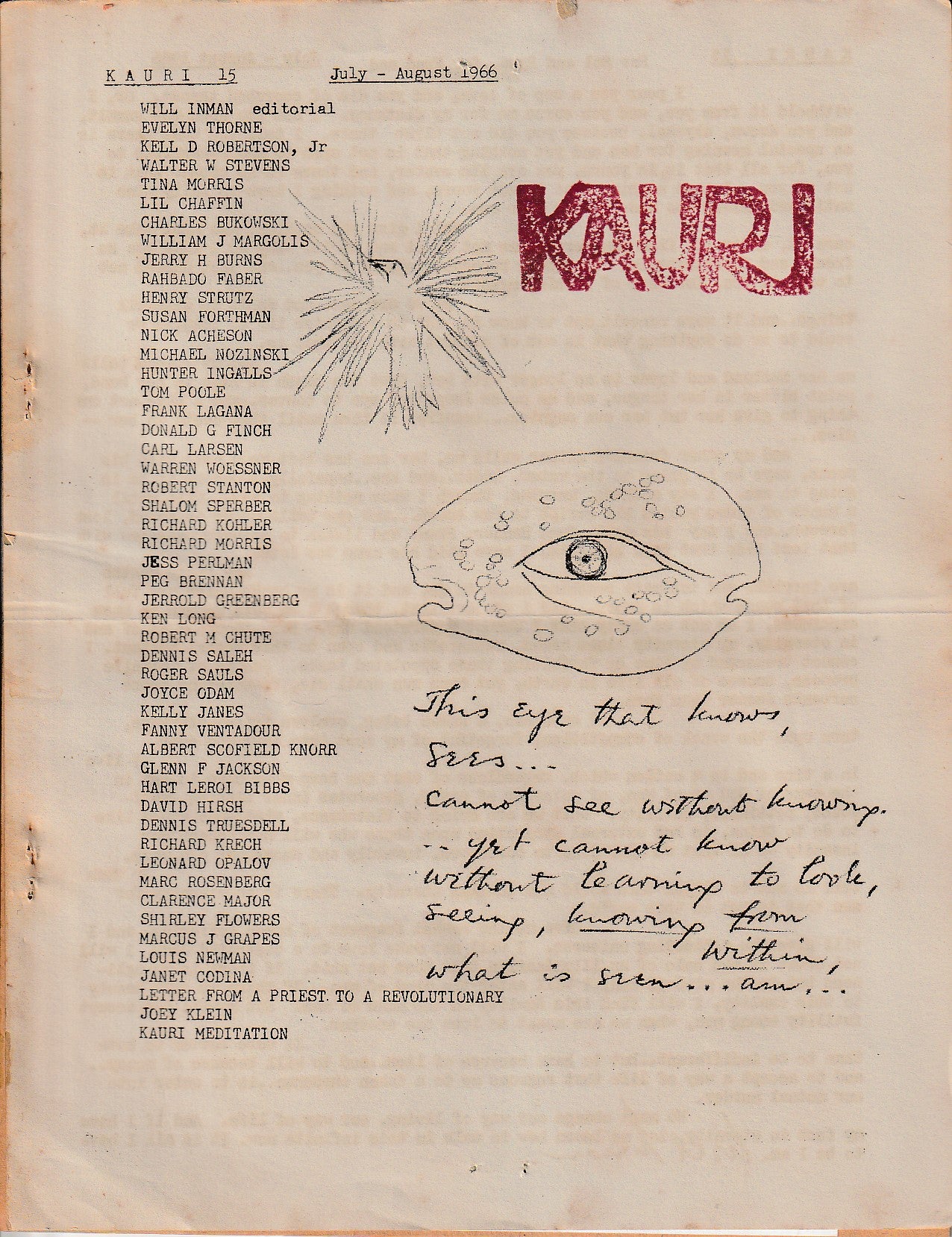 Kauri No. 15 -- Letter Excerpt and One Early Charles Bukowski Bit Of Prose (1966)