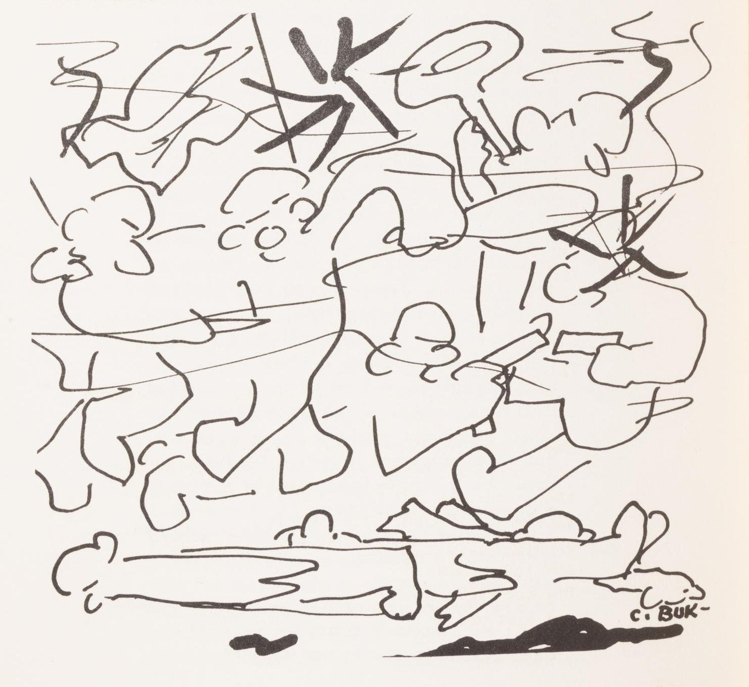 Making this copy even more collectable is that it’s an inscribed association copy with an original drawing signed by Charles Bukowski.