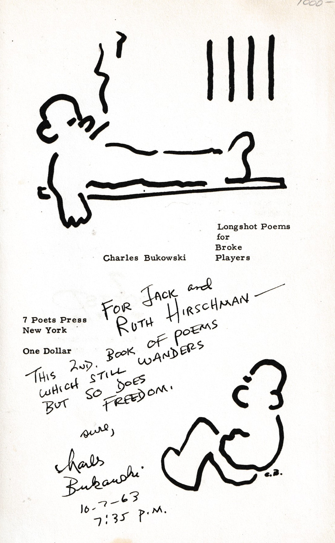 Longshot Pomes for Broke Players: Inscribed by Bukowski with Signed Original Drawing (1962)