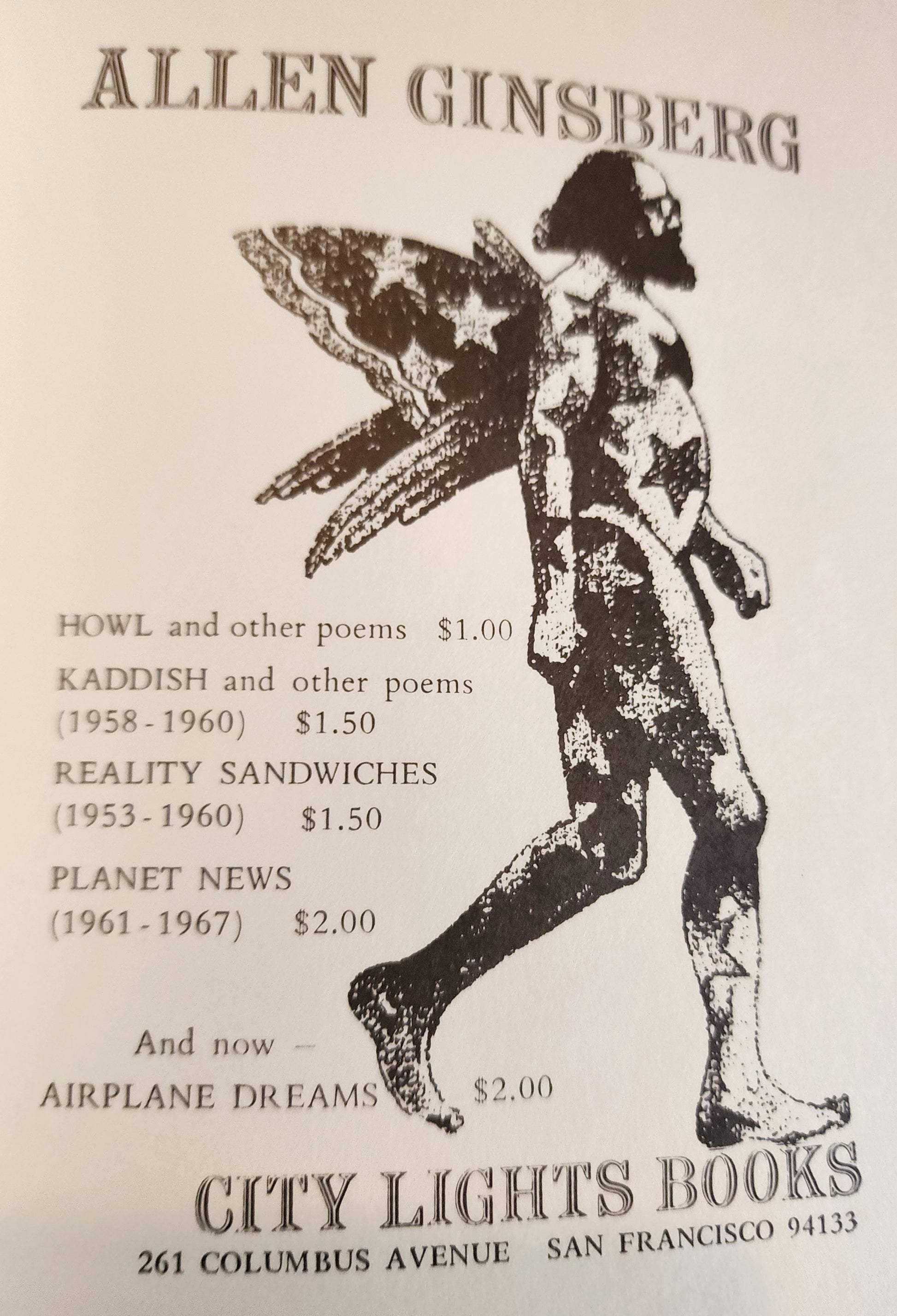 This issue also includes a great advertisement from City Lights Books featuring a great drawing of Allen Ginsberg.