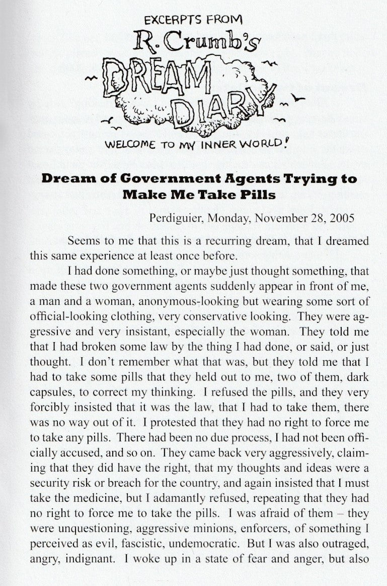 This issue also includes an excerpt from Robert Crumb’s Dream Diary, as well as a sketchbook illustration.
