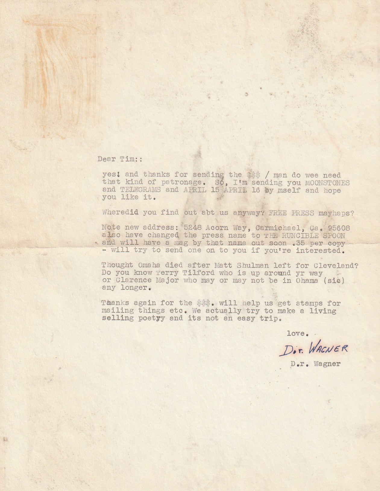 Moonstones No. 2 -- D.R. Wagner Signed Letter, One Uncollected Poem by Charles Bukowski (1966)
