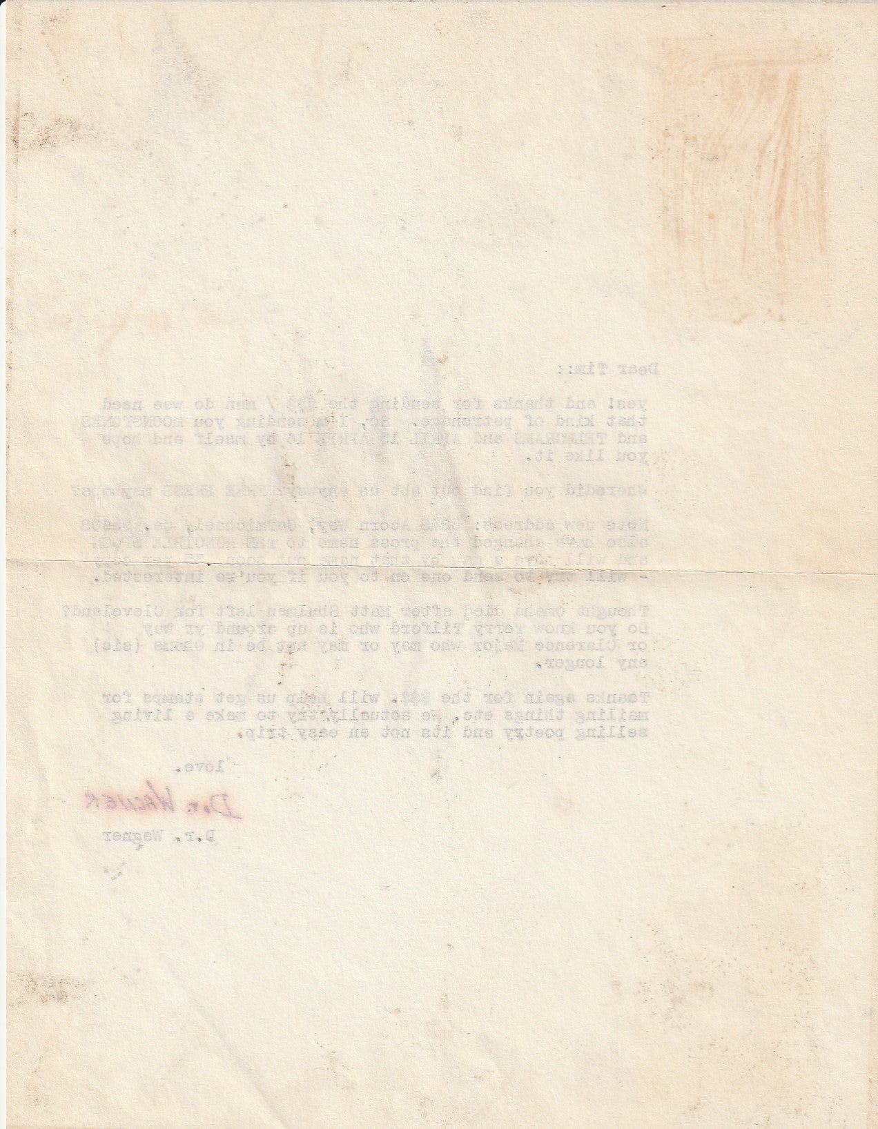 Also includes a signed letter from D.R. Wagner to a patron thanking him for his donation.