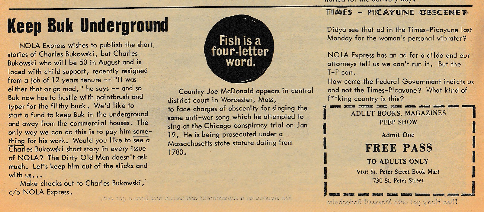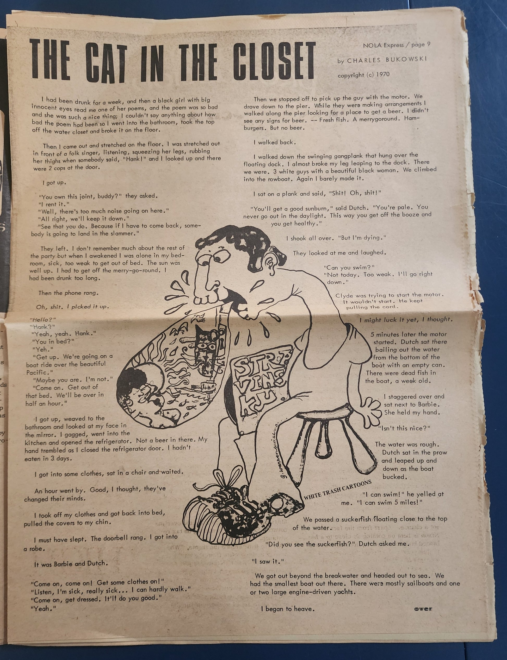 This issue of NOLA EXPRESS featured the first appearance of The Cat in the Closet by Charles Bukowski.