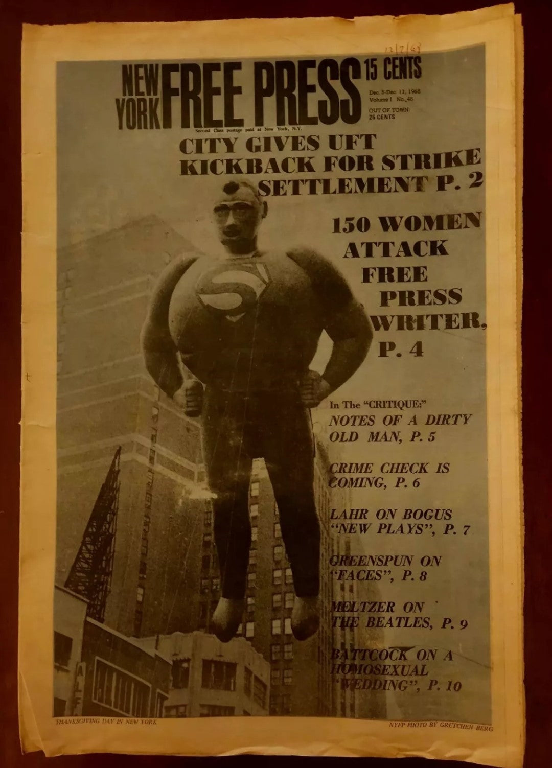 Notes of a Dirty Old Man Column in the New York Free Press (December 5, 1968)