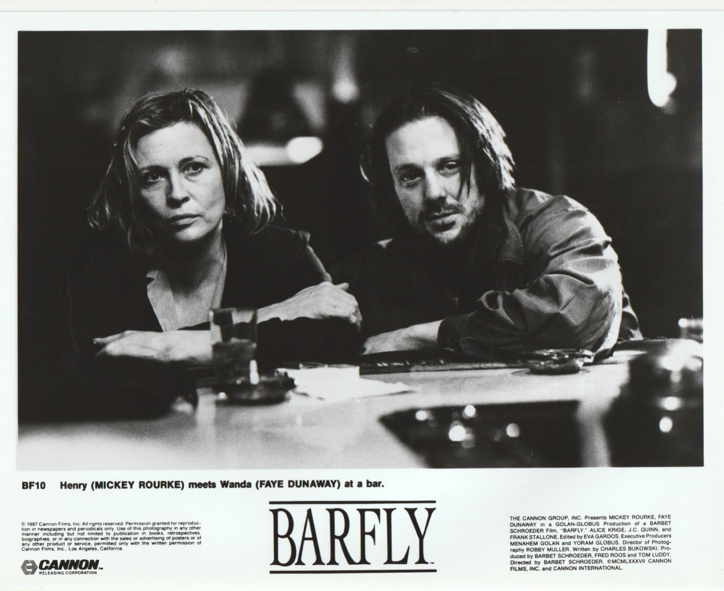 This is an original publicity photograph issued by Cannon Films for the film Barfly in 1987.