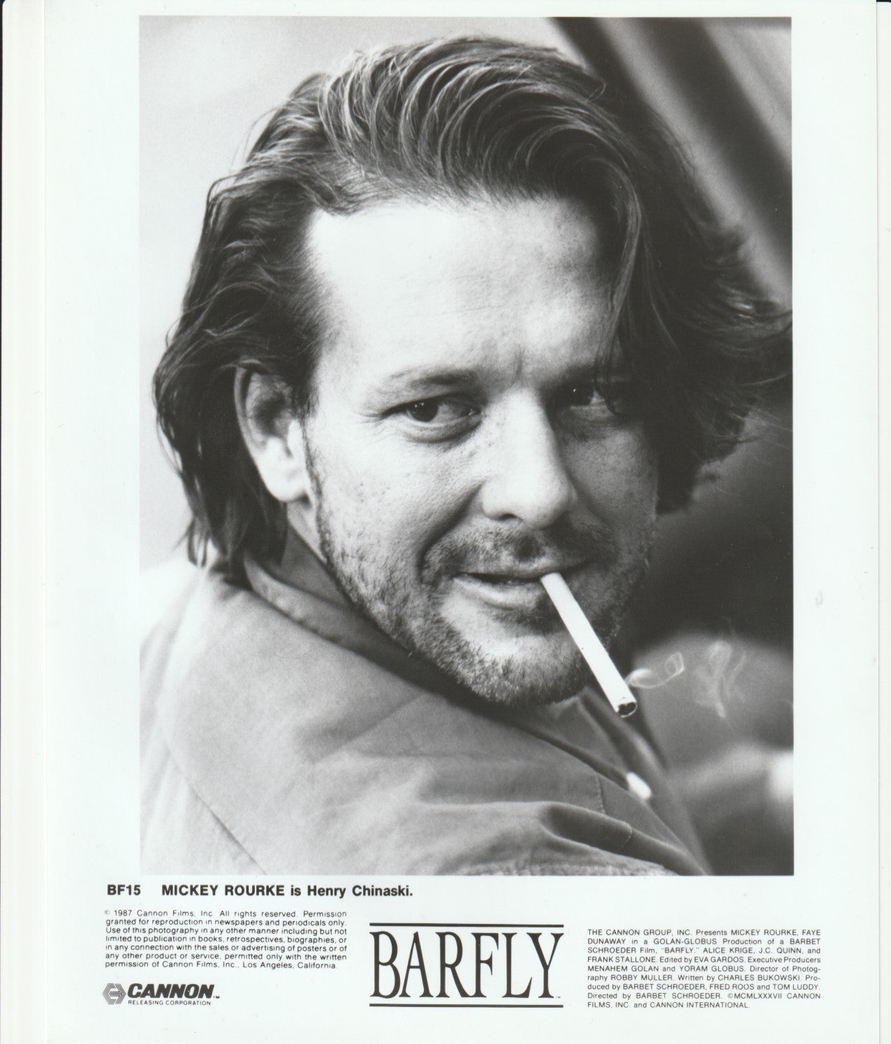 This is an original publicity photograph issued by Cannon Films for the film Barfly in 1987.
