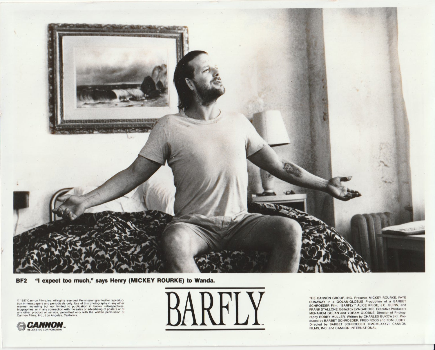 This is an original publicity photograph issued by Cannon Films for the film Barfly in 1987.