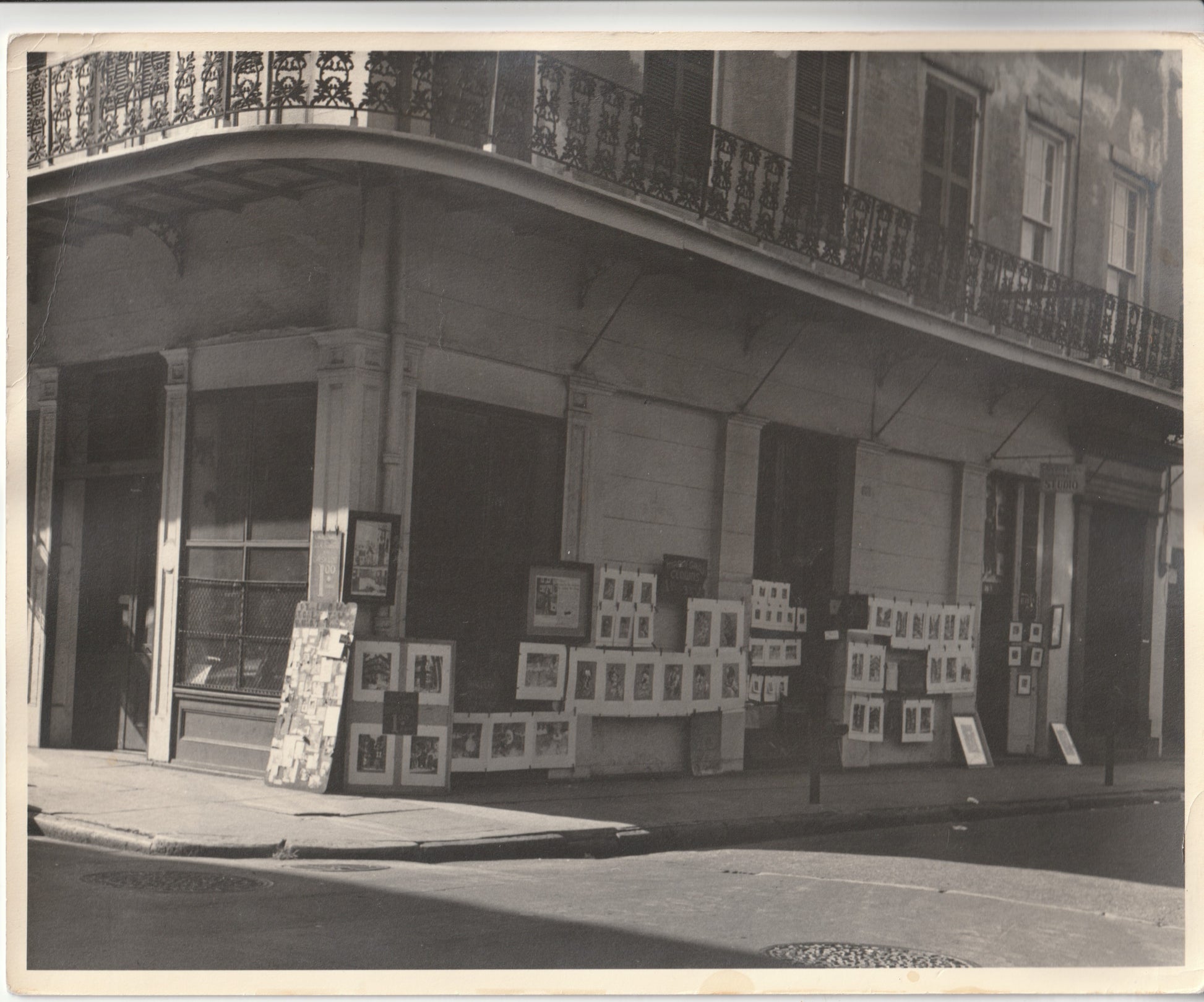 In his groundbreaking book on the Webbs and LouJon Press, “Bohemian New Orleans, The Story of the Outsider and LouJon Press”, historian Jeff Weddle mentions an article on Gypsy Lou from the Times Picayune that can be seen displayed on the studio’s storefront, but the clipping was from Gypsy Lou’s own keepsakes and was not dated.