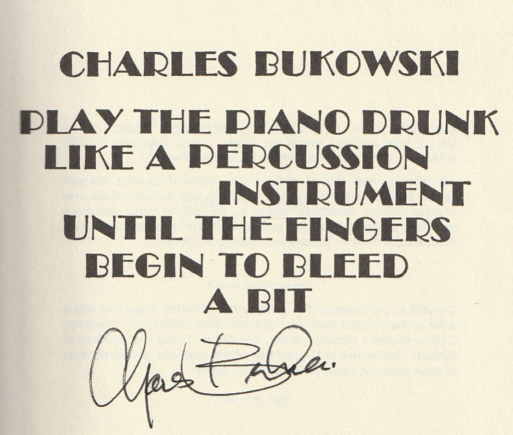 This is a Hardcover copy of the 6th Printing Charles Bukowski’s book, Play the Piano Drunk Like a Percussion Instrument until the Fingers Begin to Bleed a Bit