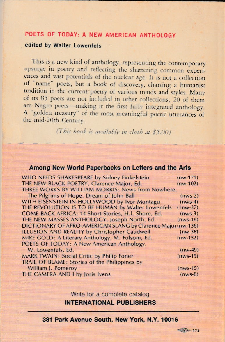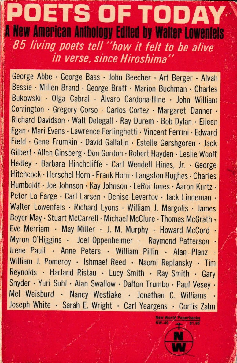 Published in 1964 by International Publishers, Poets of Today features the Charles Bukowksi poem:
