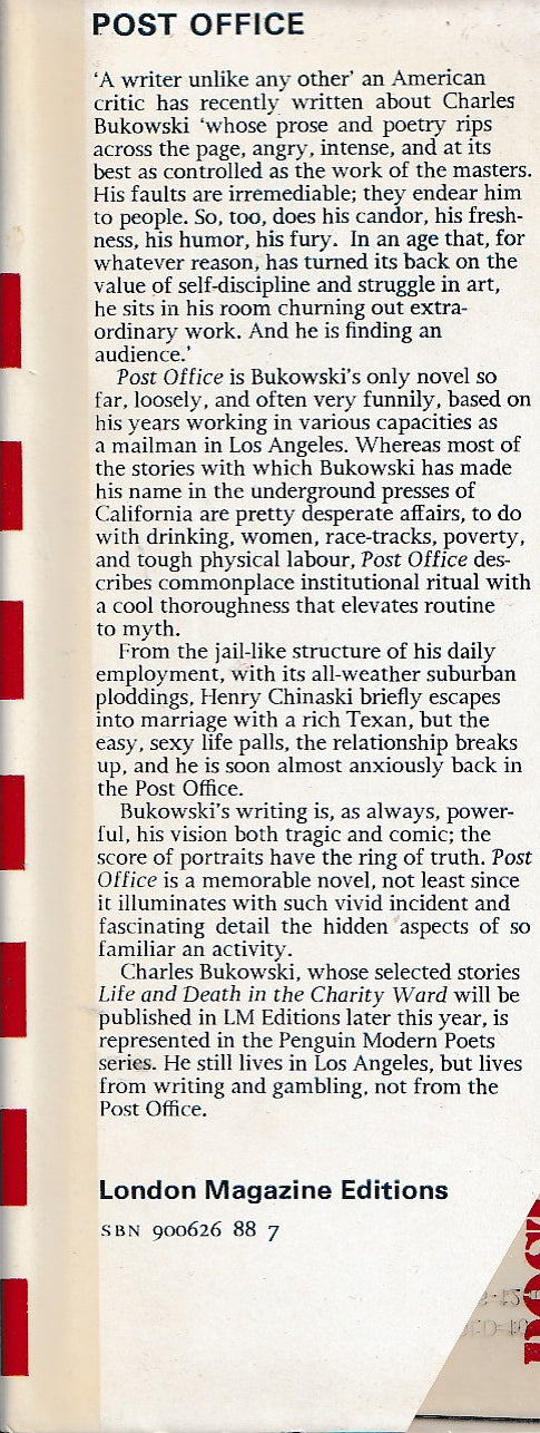 It was published by London Magazine Editions in 1974. (Post Office was first published in 1971 by Black Sparrow Press.)