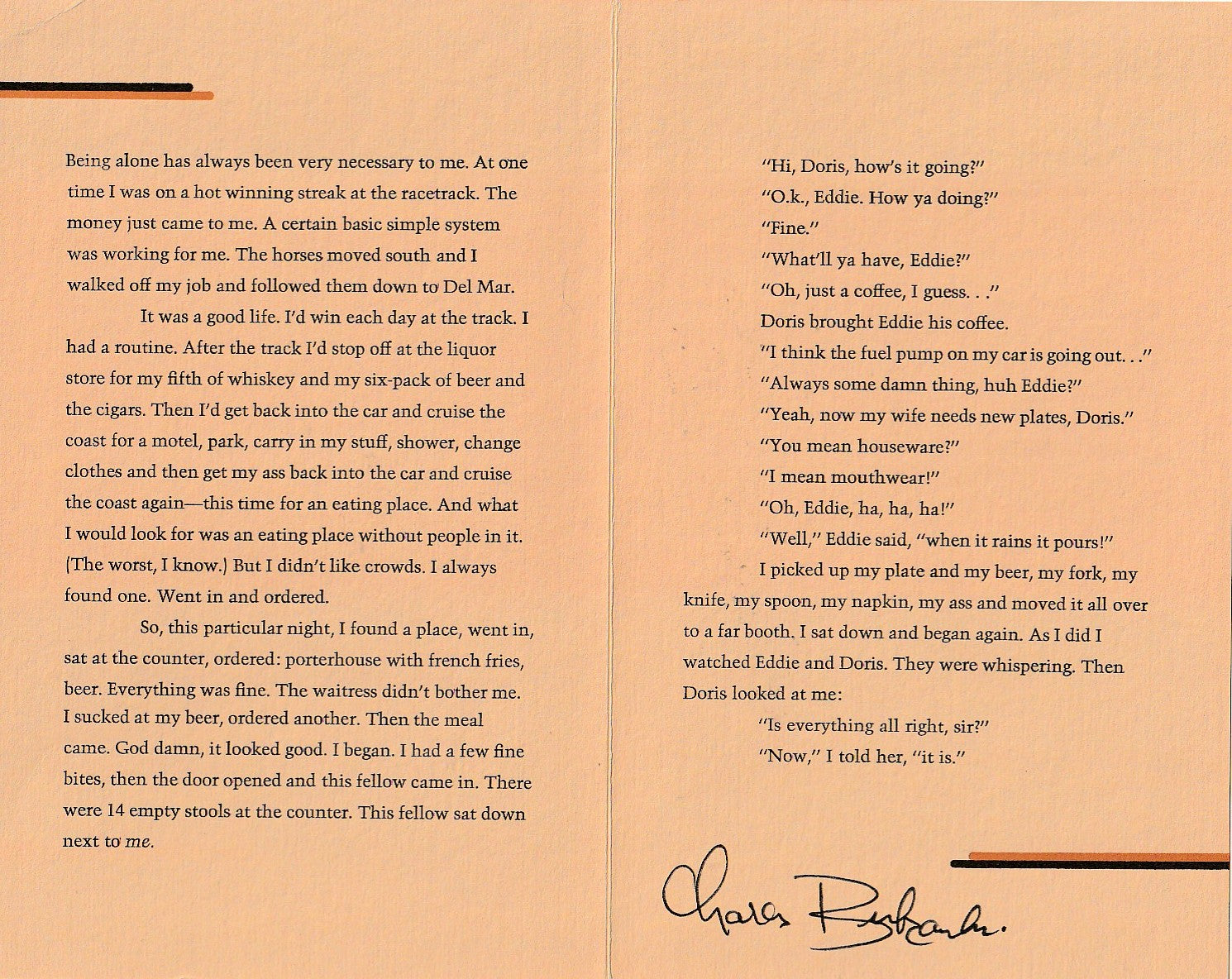 Prospectus for Horsemeat: Signed by Charles Bukowski