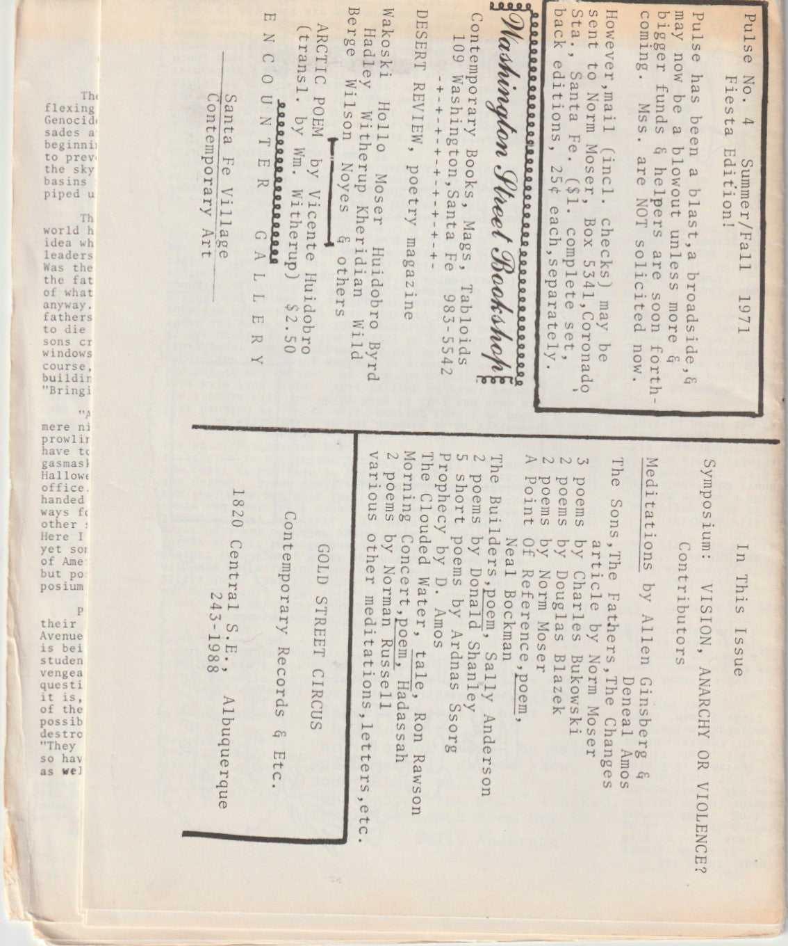 A solid copy of this journal published by Norm Moser out of Santa Fe, New Mexico.