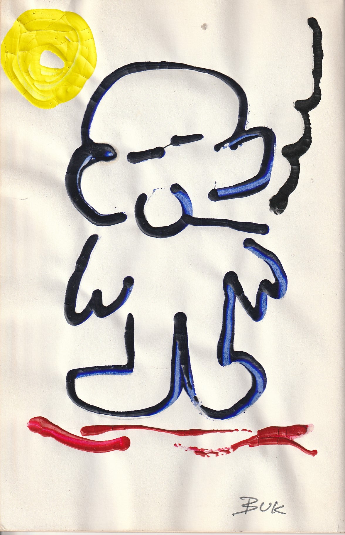 This is a very rare “Author’s Copy” in which Bukowski has painted his famous “Little Man” on the final blank end page of the chapbook. There are three signatures: