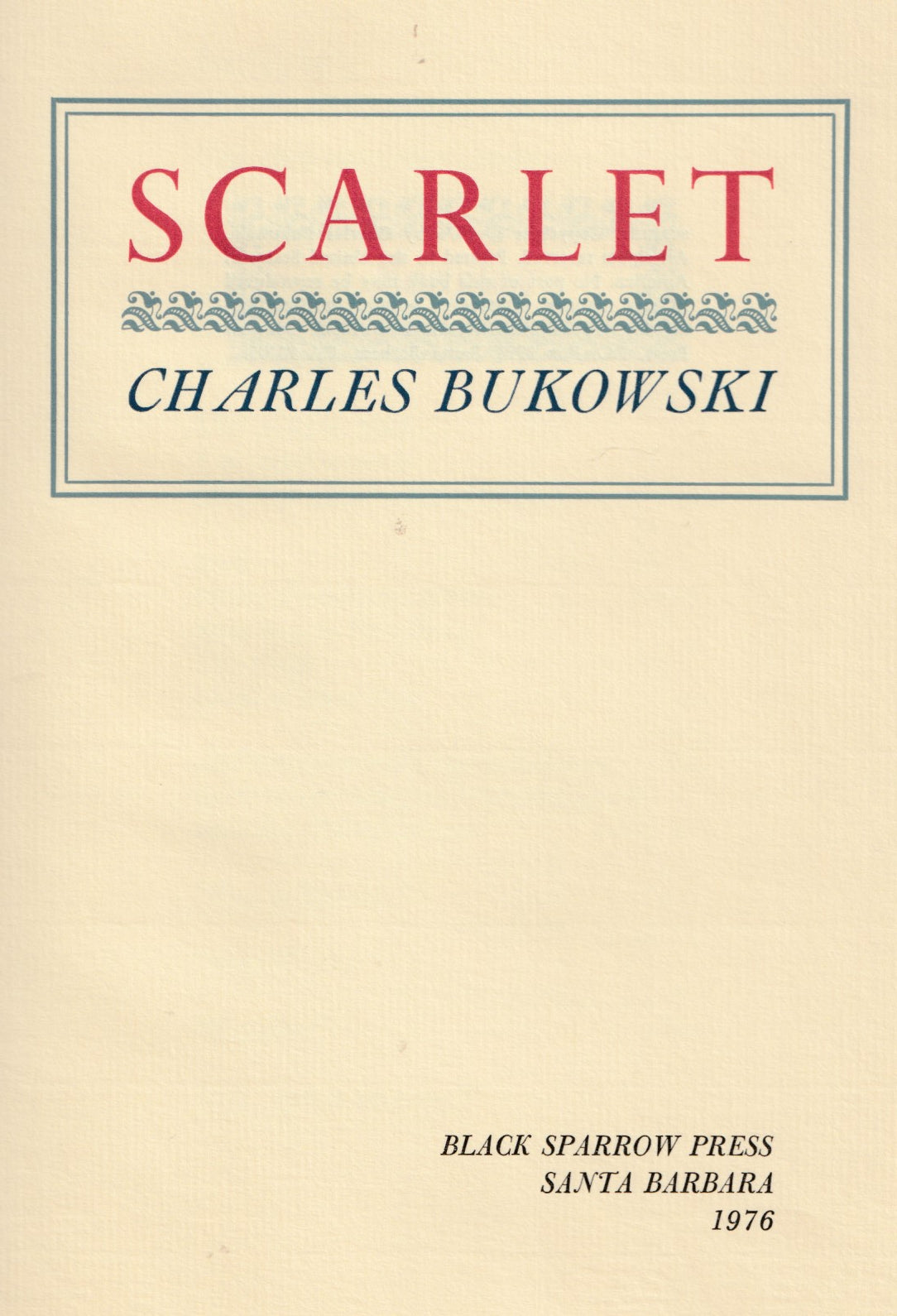 Scarlet is a series of poems written during Bukowski’s relationship with Pamela "Cupcakes" Miller. The title comes from her long red hair, which Bukowski referred to as “like lightning from heaven”. Miller would also be the basis for one of the characters in Bukowski’s novel, Women.