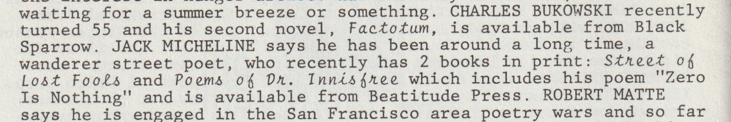 Scree 5 -- One Uncollected, Three First Appearance Poems by Charles Bukowski (1976)