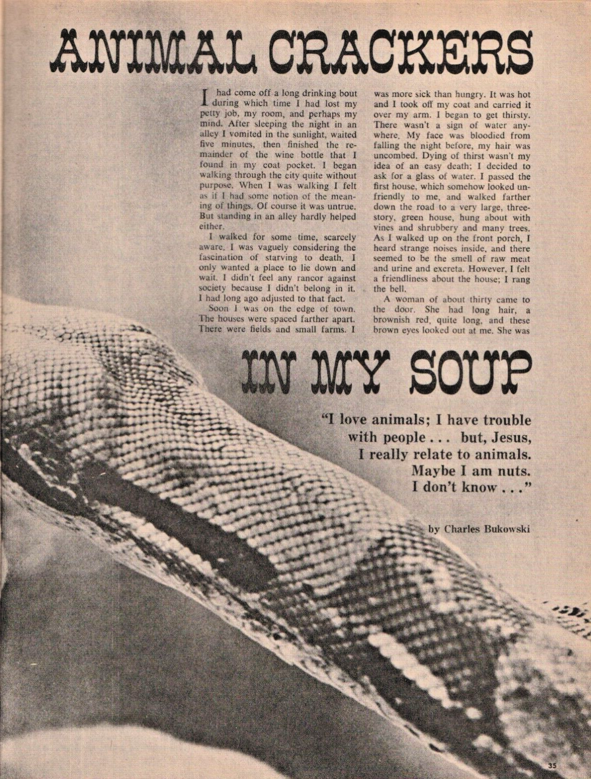 Pix July 1972 -- Short Story by Charles Bukowski: Animal Crackers in My Soup (1972)