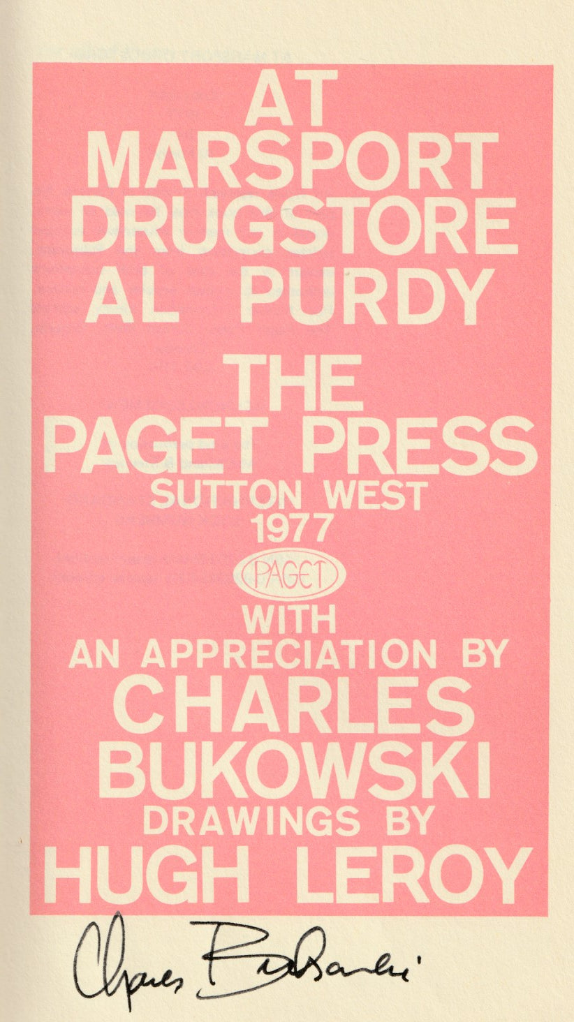 Signed by Charles Bukowski: Introduction to Al Purdy’s At Marsport Drugstore