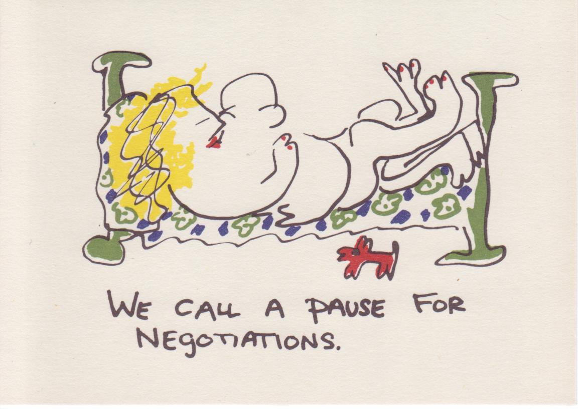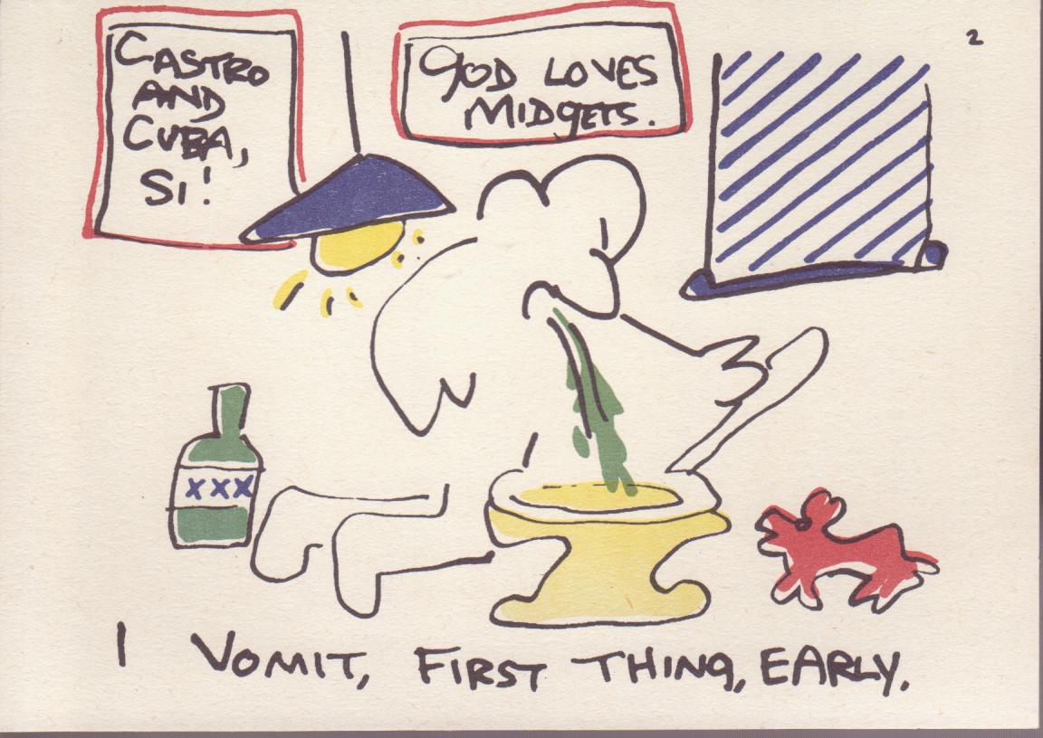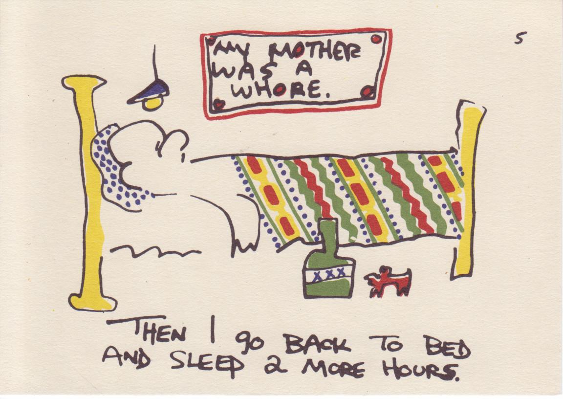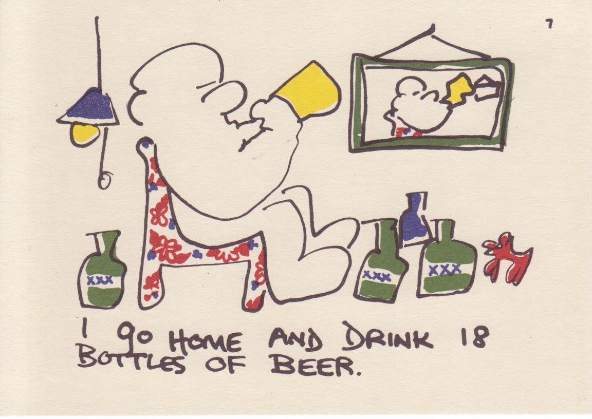 The set is made up of a fictional envelope and letter, and 10 individual silkscreen drawings by Bukowski. The drawings are an attempt to describe the question in the letter: “What we are wondering is what is your typical day like?”