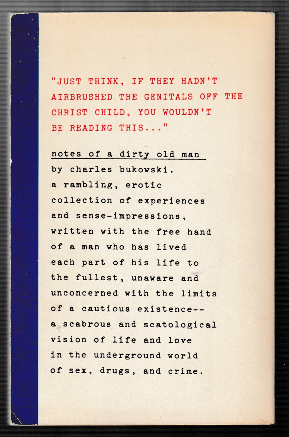 The Essex House edition of Bukowski’s classic Notes of a Dirty Old Man was published in 1969, five years earlier than the City Lights version, making it the true first edition.