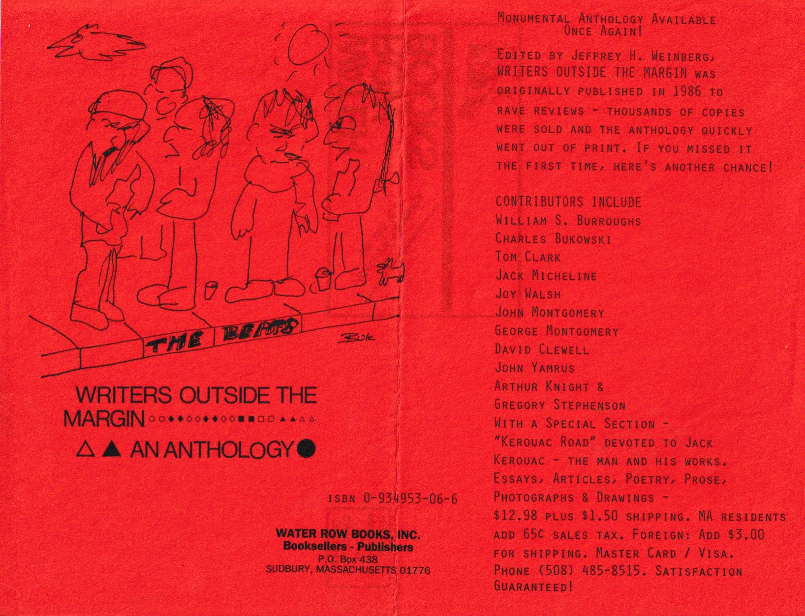 Published in 1986 by the legendary Jeffrey Weinberg from Water Row Books, Writers Outside the Margin features a really great Notes of a Dirty Old Man column about Bukowski meeting Neal Cassady a week before his death.