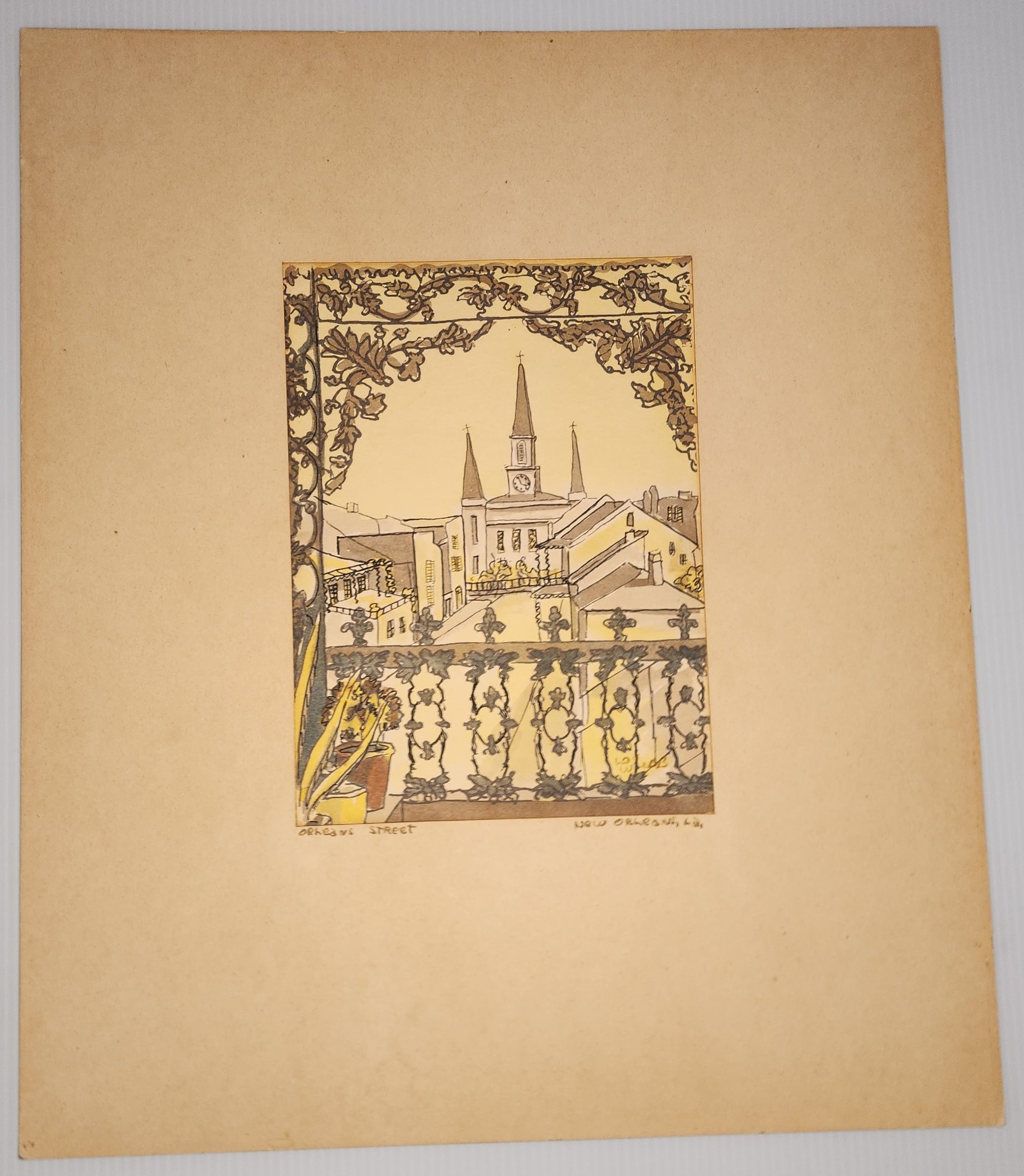The image size is approximately 8.25” x 6” and remains vibrant. The mat measures approximately 16.25” x 14” and has light toning and foxing. See pics.