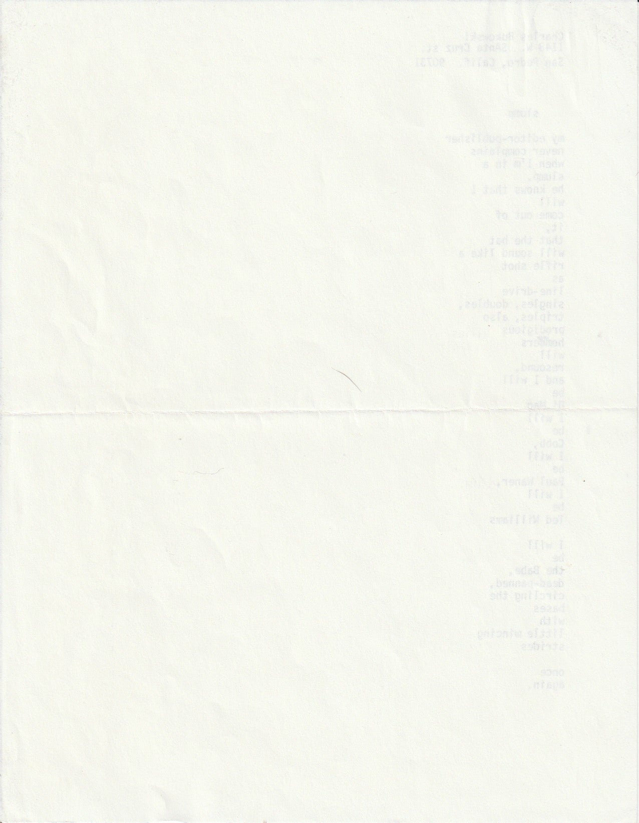 This is a one-page, unsigned and undated manuscript by Charles Bukowski.